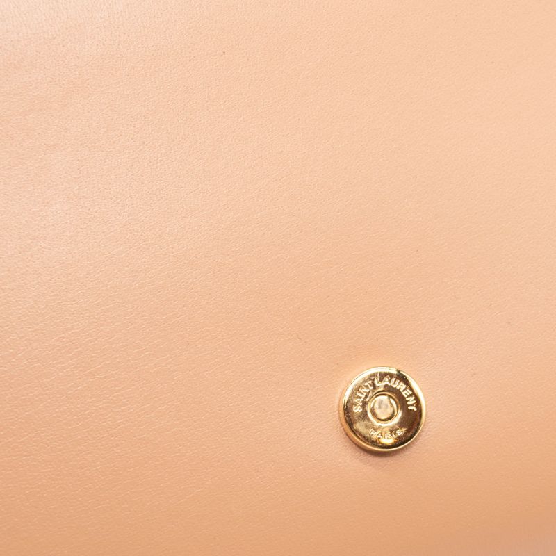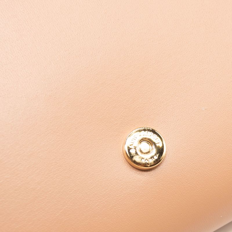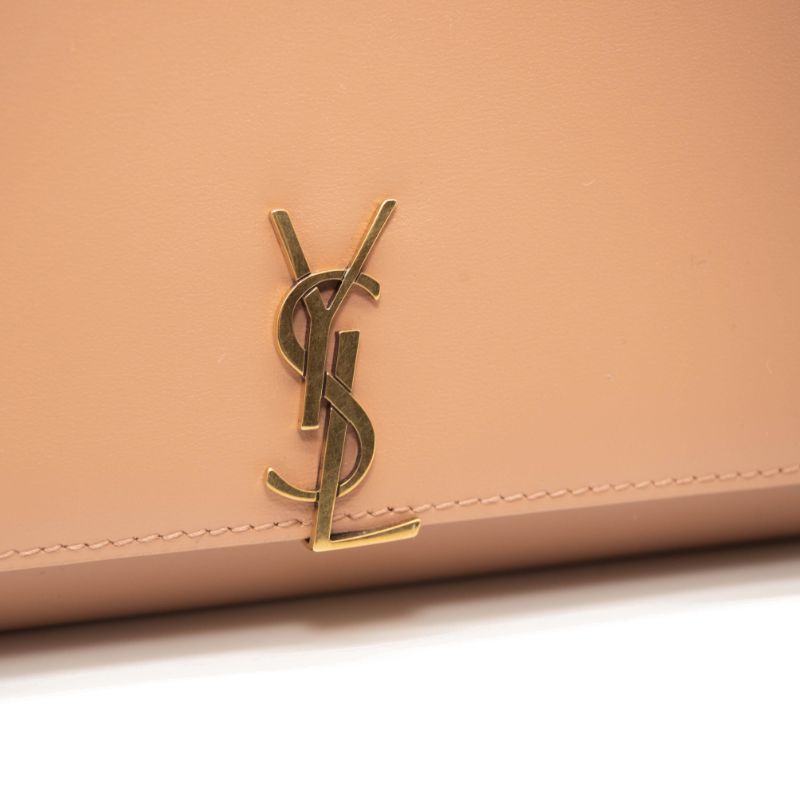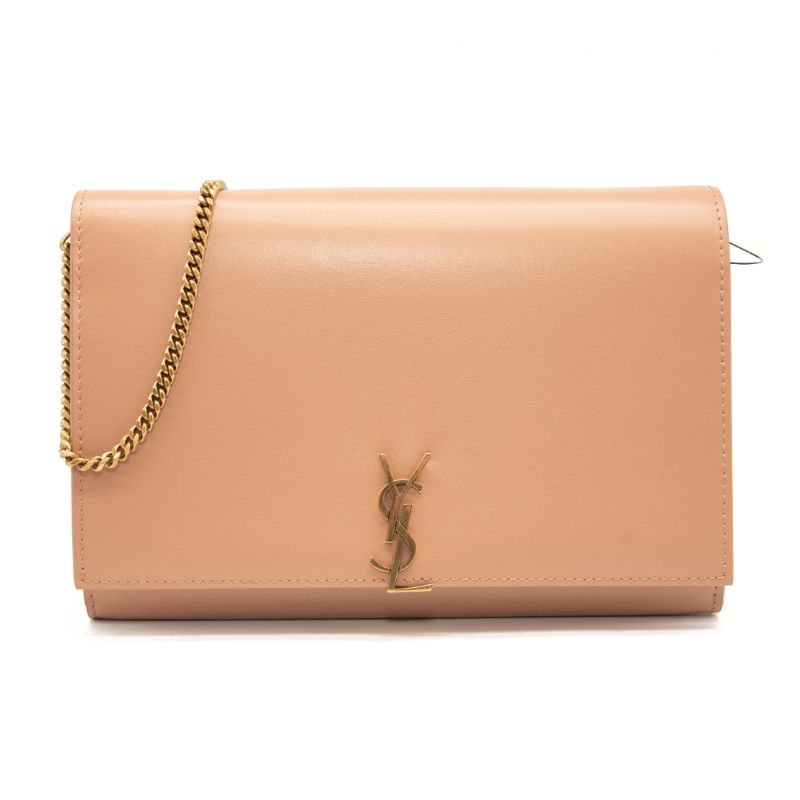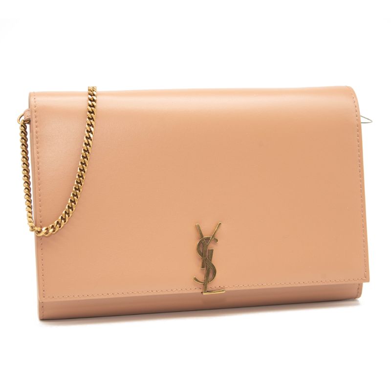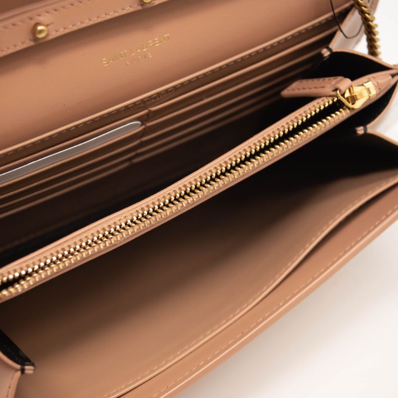 NEW Saint Laurent Glossy Calfskin Monogram Chain Wallet Dark Beige