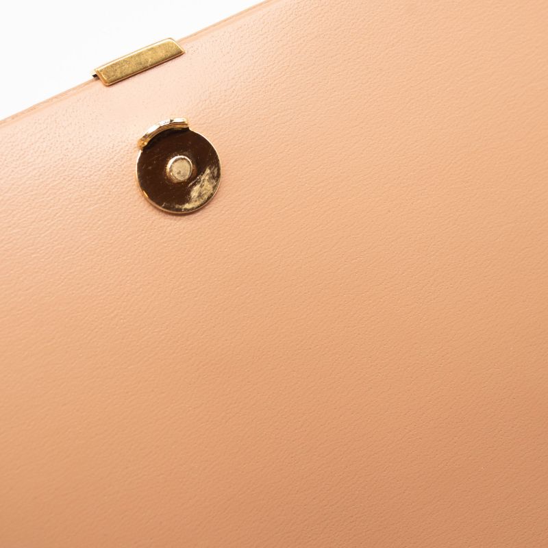 This is an authentic SAINT LAURENT Glossy Calfskin Monogram Chain Wallet in Dark Beige. This chain wallet features pebbled leather in beige. The bag features a removable aged gold chain link shoulder strap and a facing flap with a gold YSL logo. The flap opens with a button snap to a partitioned leather interior with card slot panels, and zippered and patch pockets.