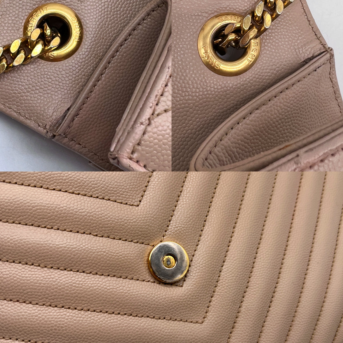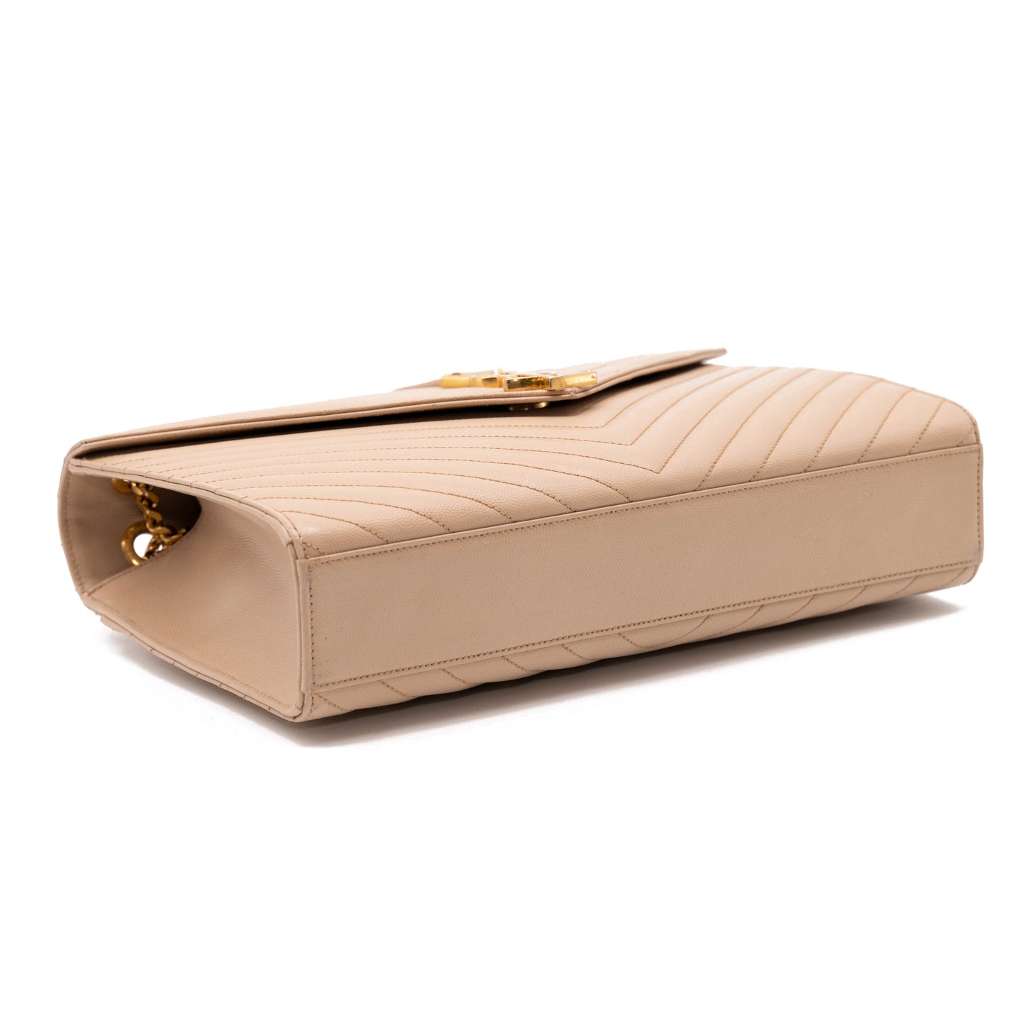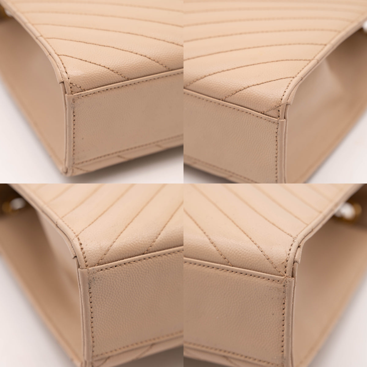 Saint Laurent Grain De Poudre Matelasse Chevron Large Monogram Satchel Dark Beige