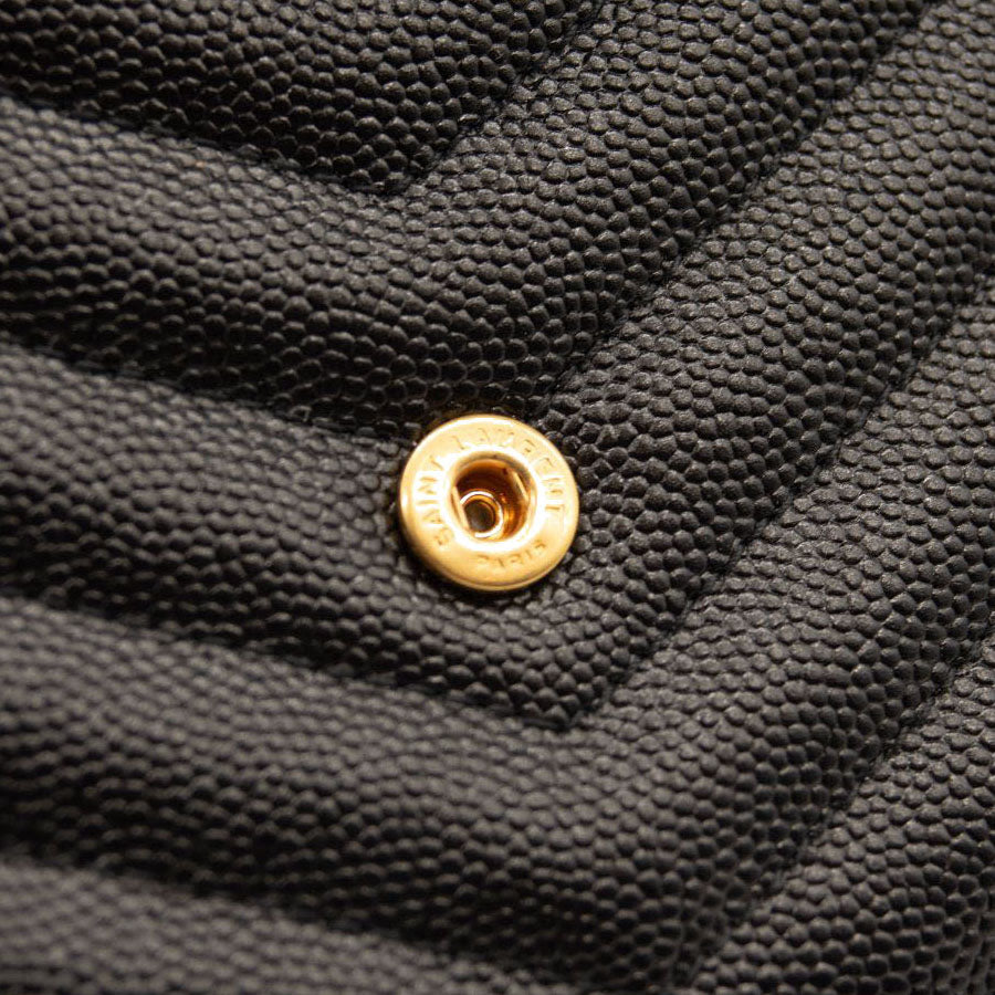 NEW SAINT LAURENT Grain De Poudre Matelasse Chevron Monogram Chain Wallet Black