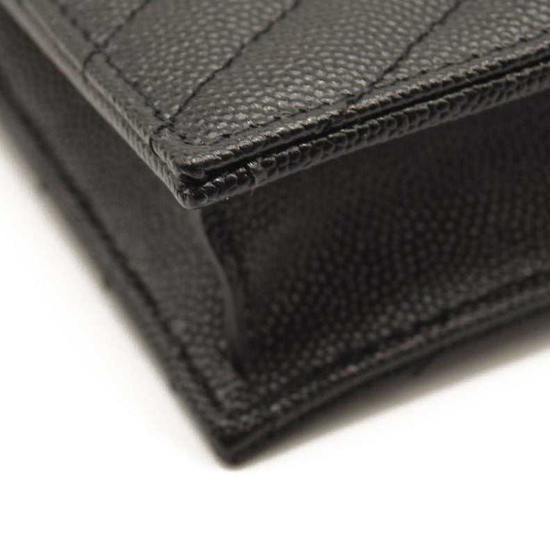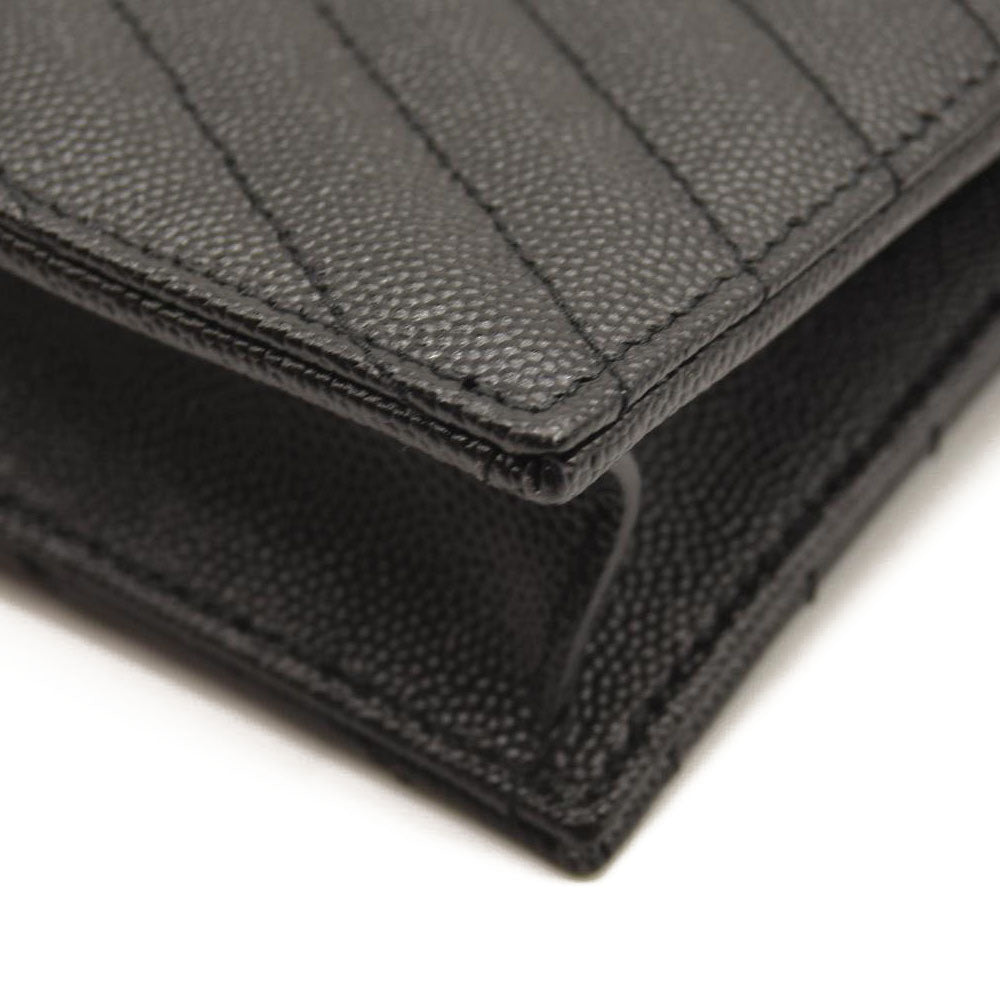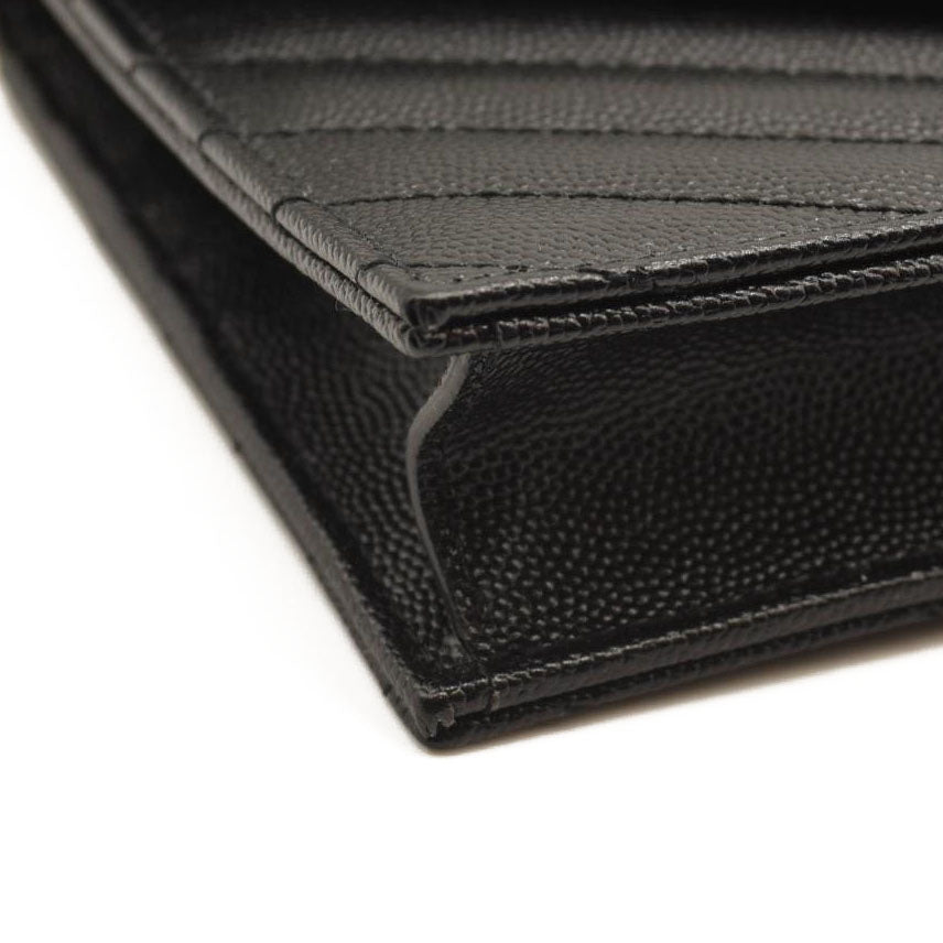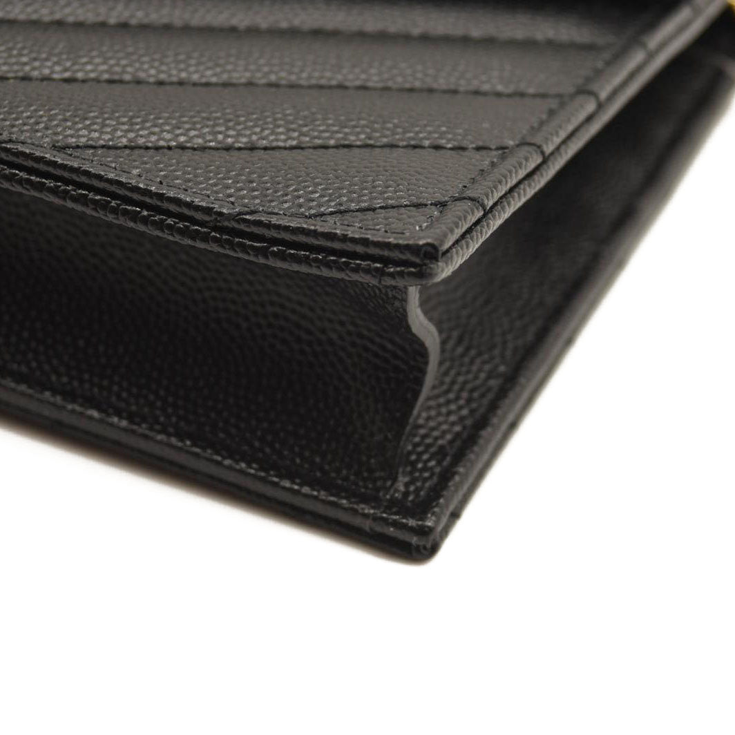 SAINT LAURENT Grain De Poudre Matelasse Chevron Monogram Chain Wallet Black