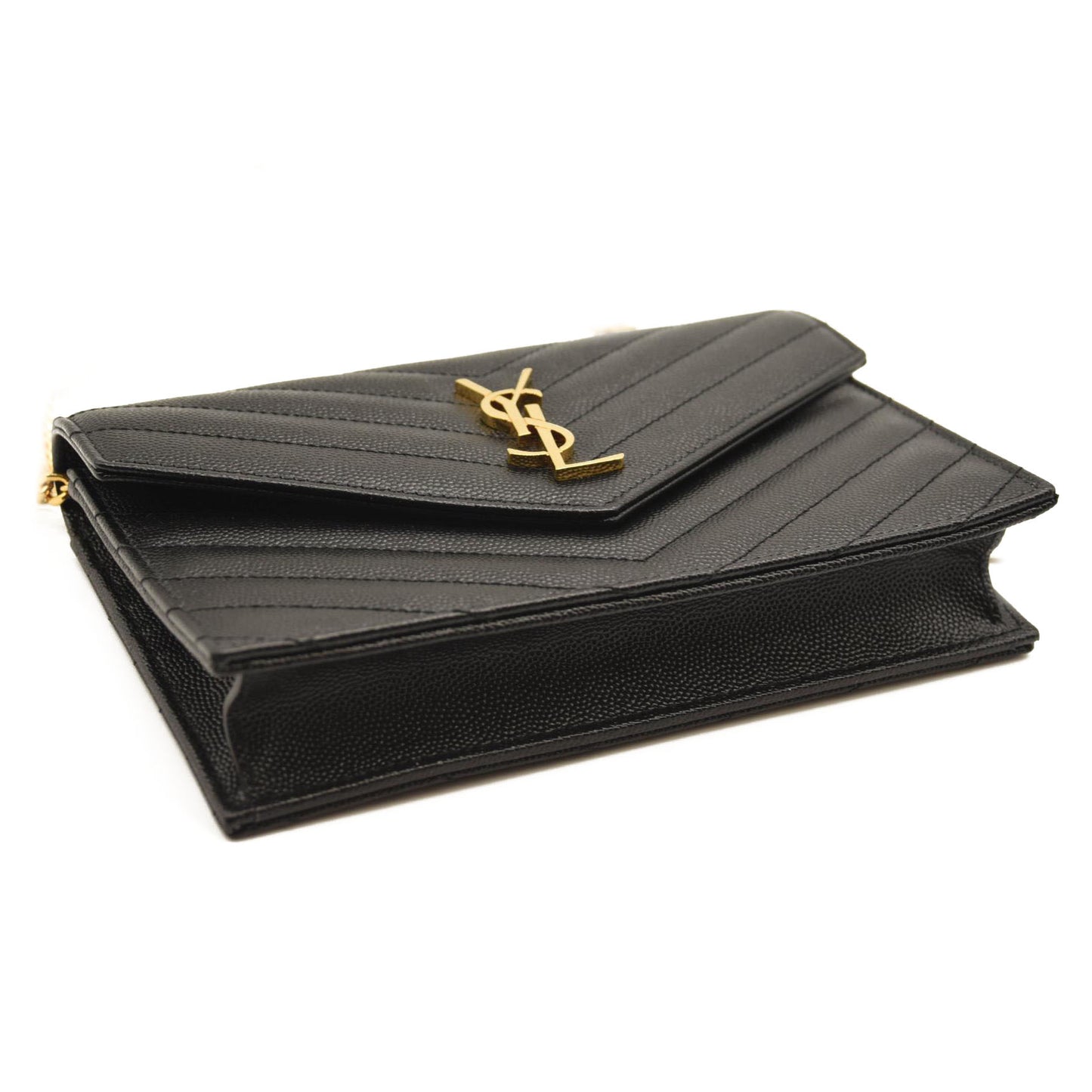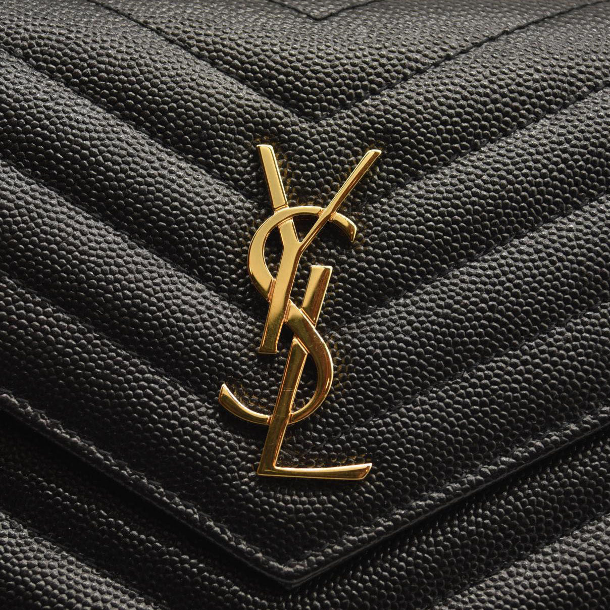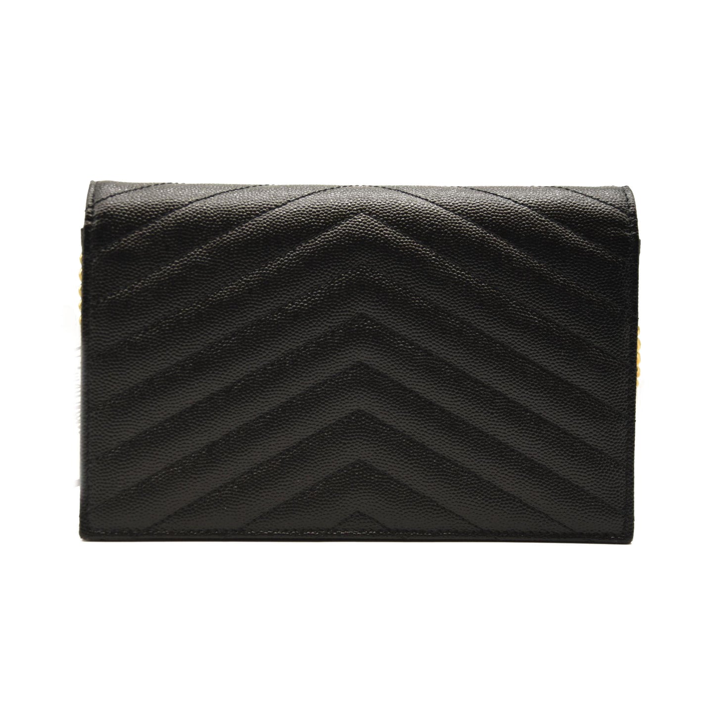 SAINT LAURENT Grain De Poudre Matelasse Chevron Monogram Chain Wallet Black