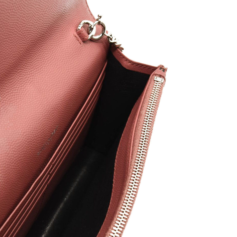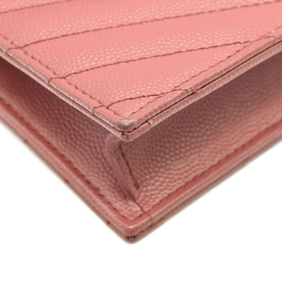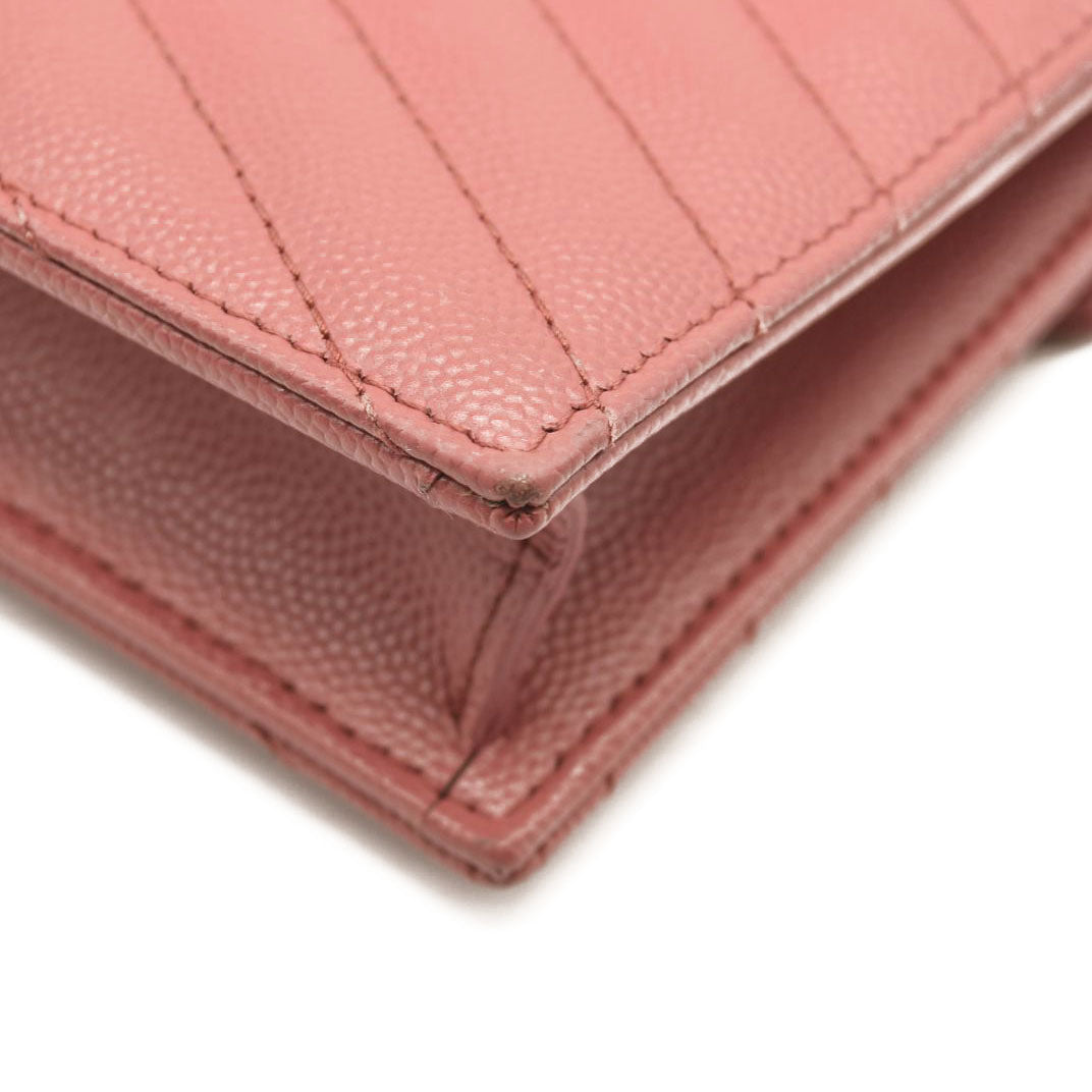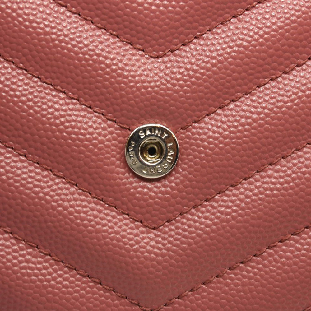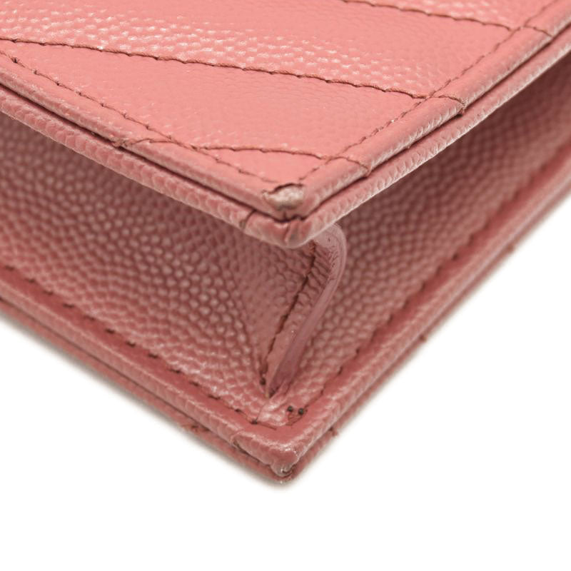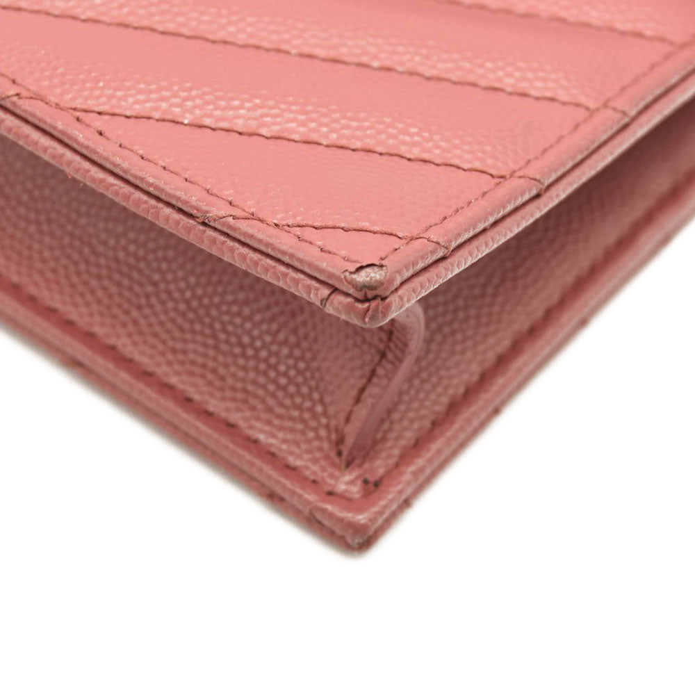 SAINT LAURENT Grain De Poudre Matelasse Chevron Monogram Chain Wallet Mystic Rose