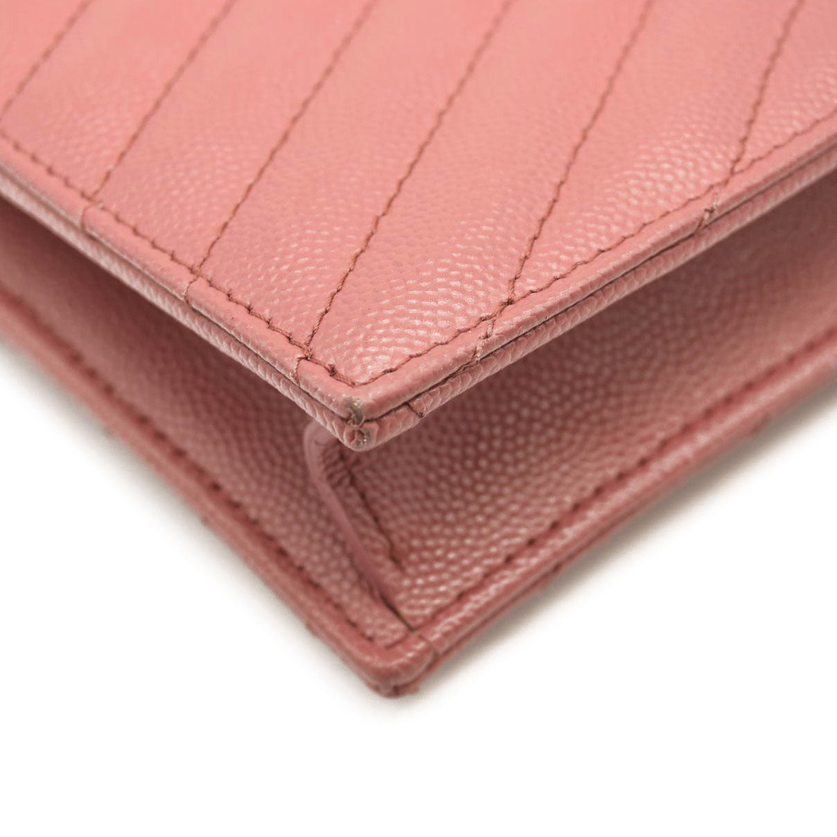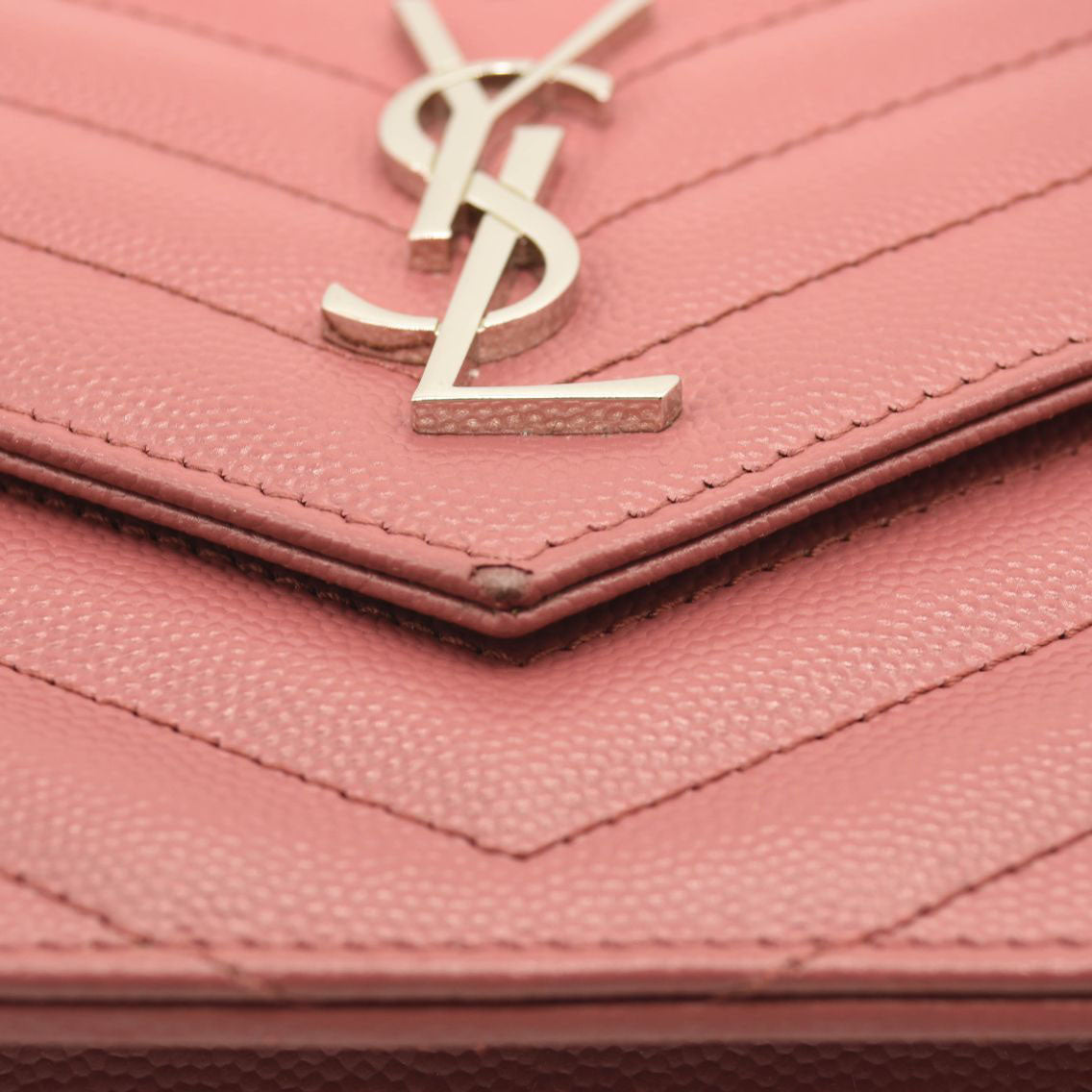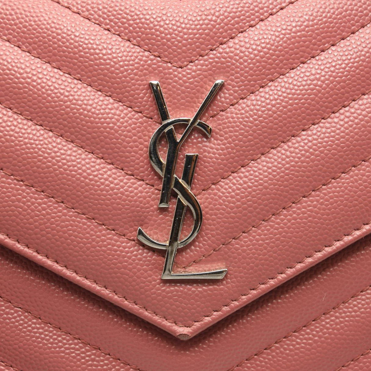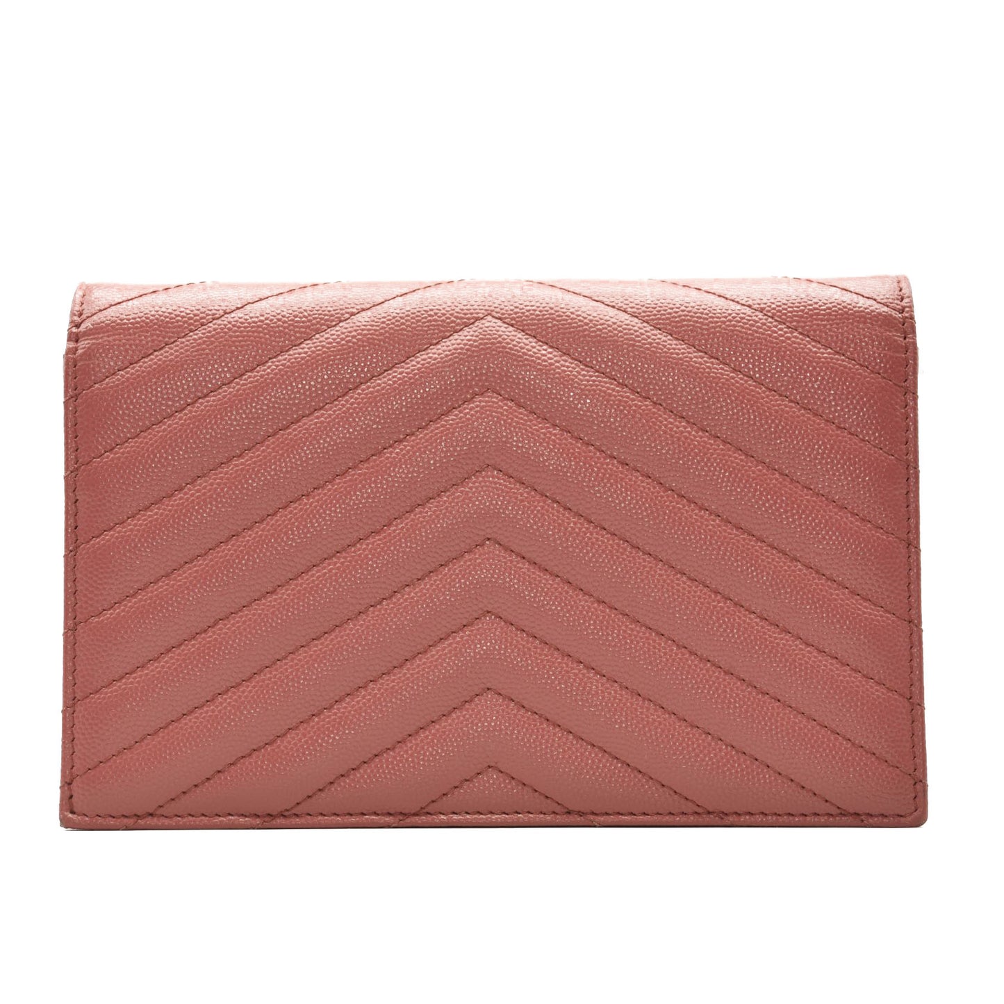 SAINT LAURENT Grain De Poudre Matelasse Chevron Monogram Chain Wallet Mystic Rose