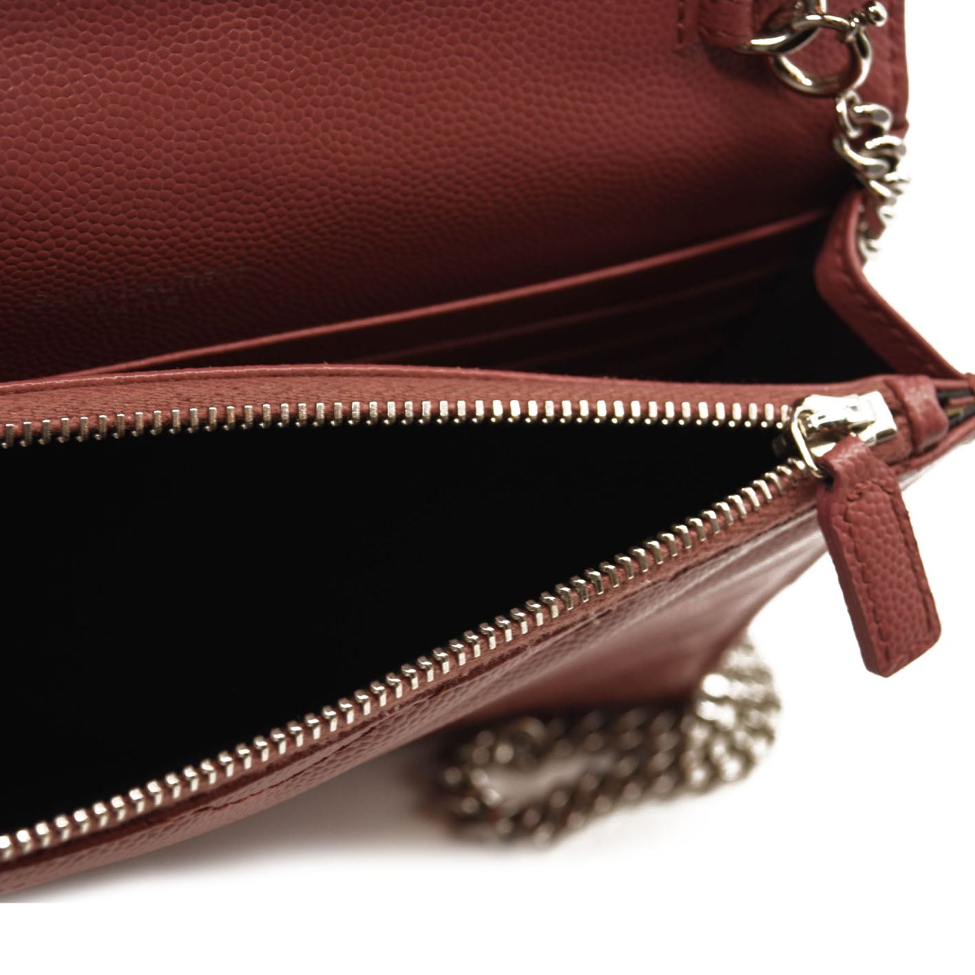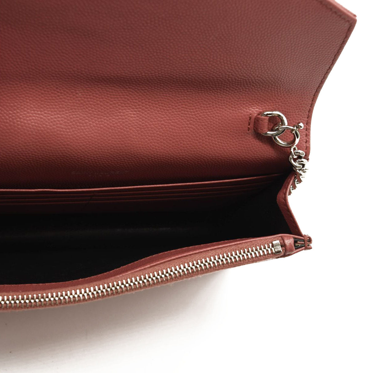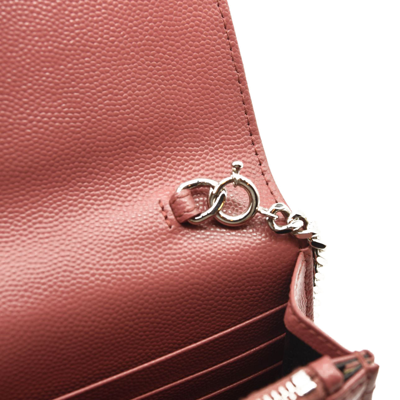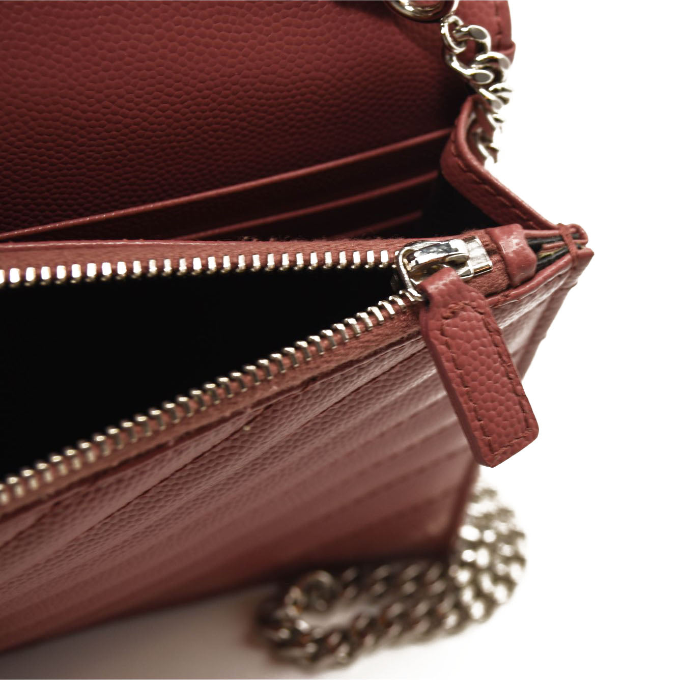 SAINT LAURENT Grain De Poudre Matelasse Chevron Monogram Chain Wallet Mystic Rose