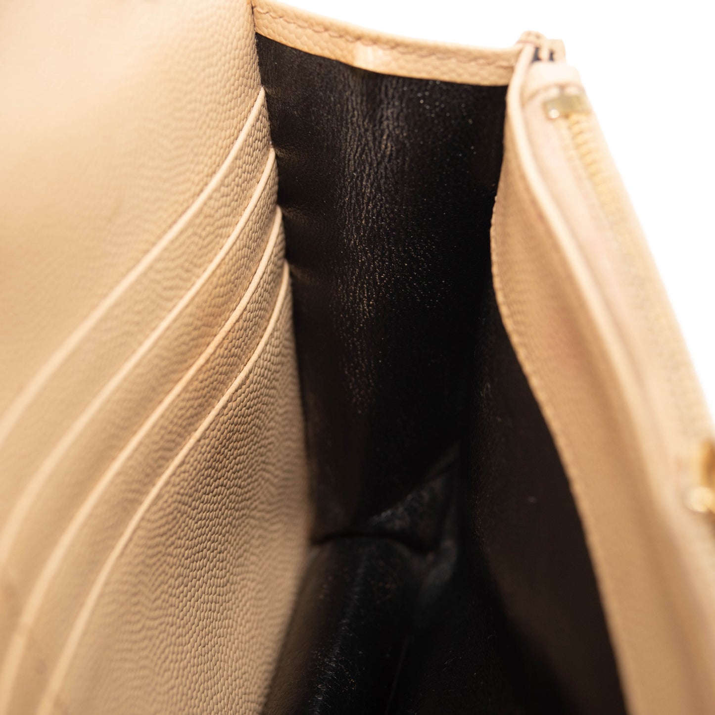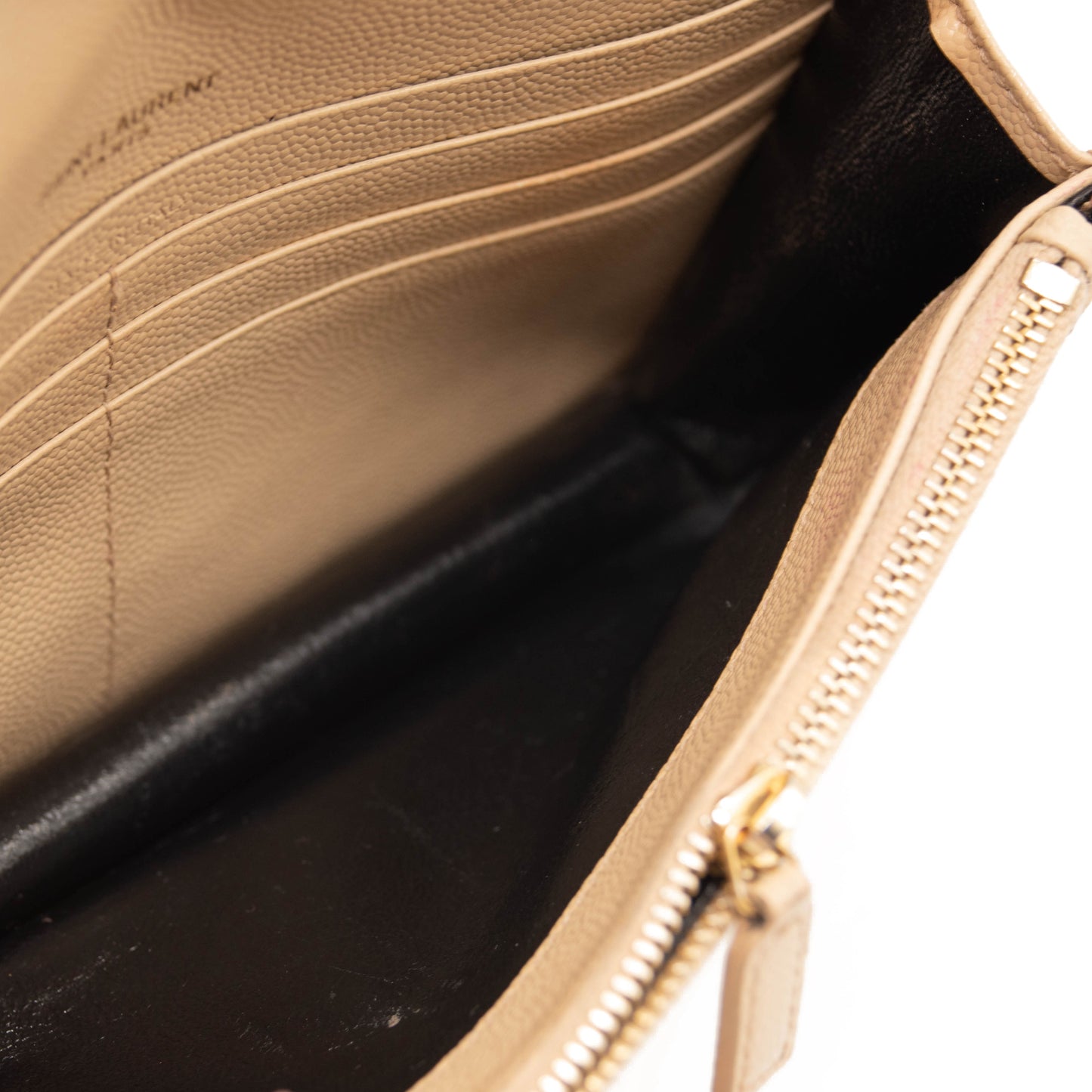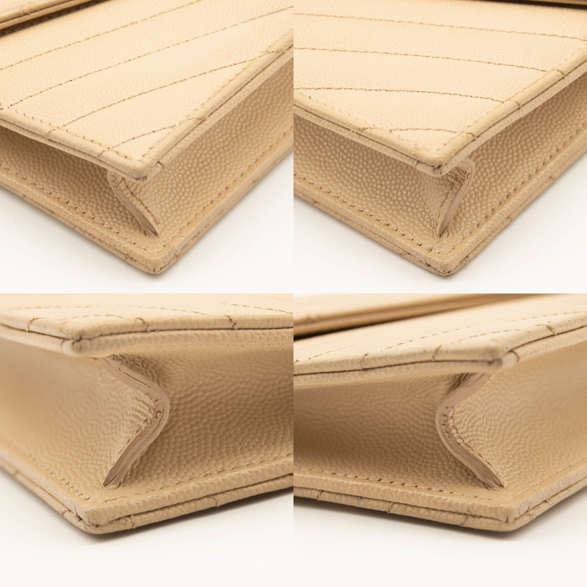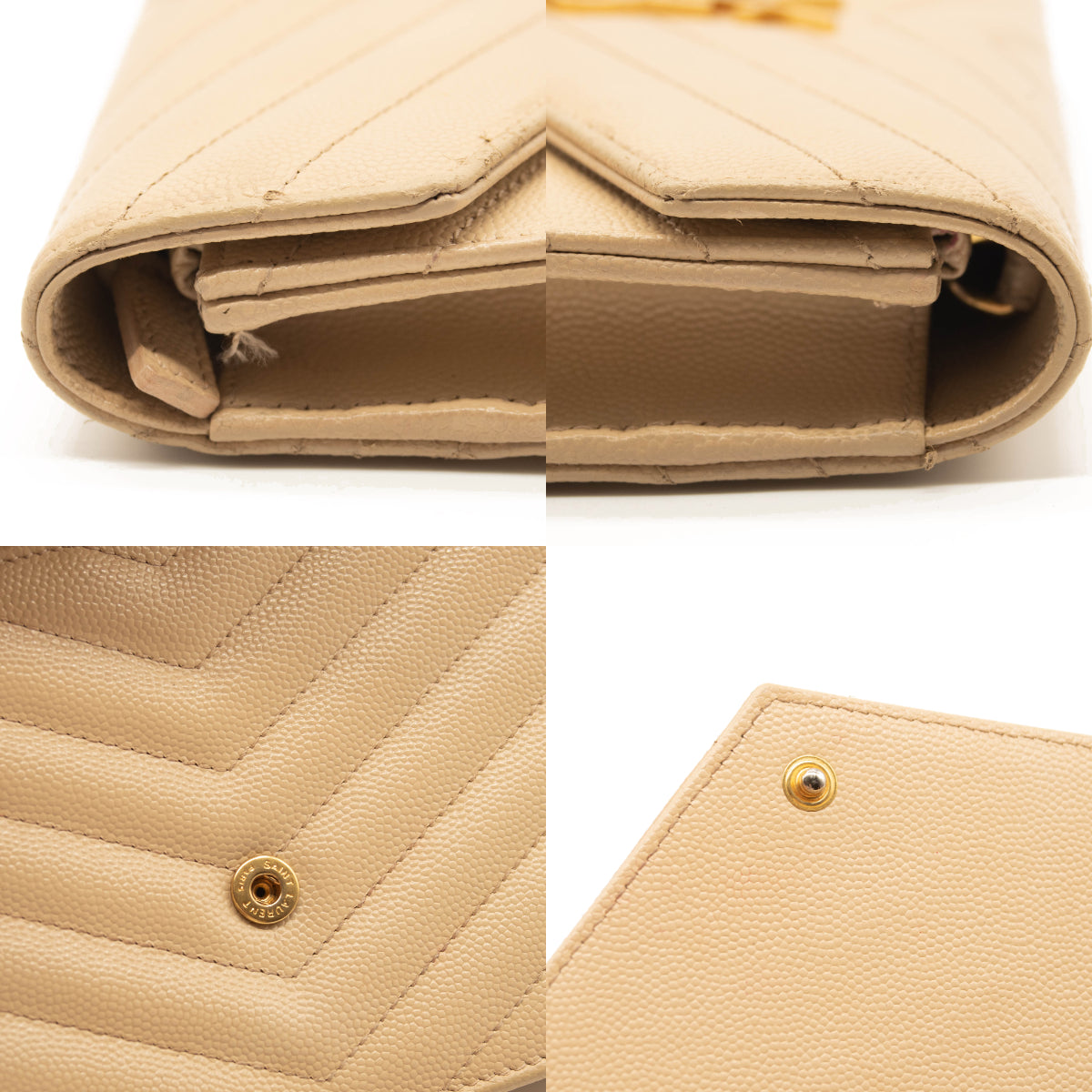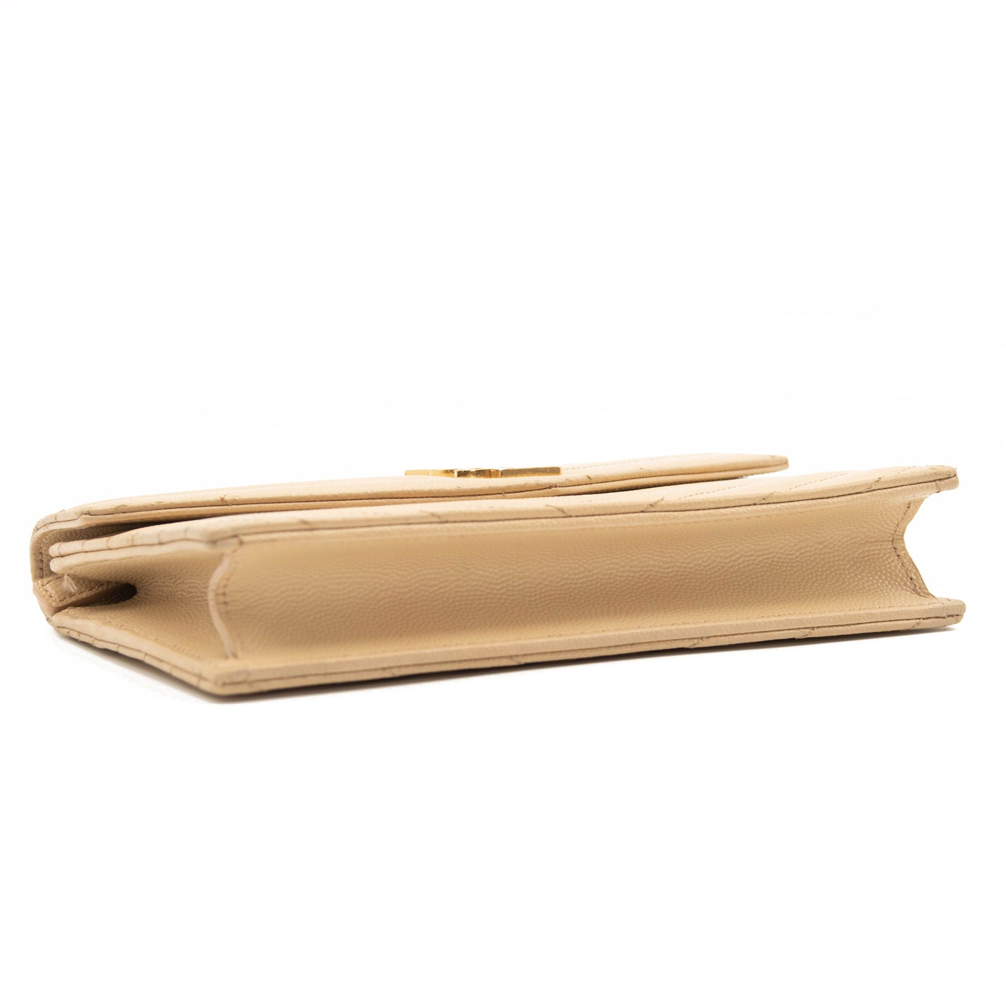 SAINT LAURENT Grain De Poudre Matelasse Chevron Monogram Envelope Chain Wallet Beige