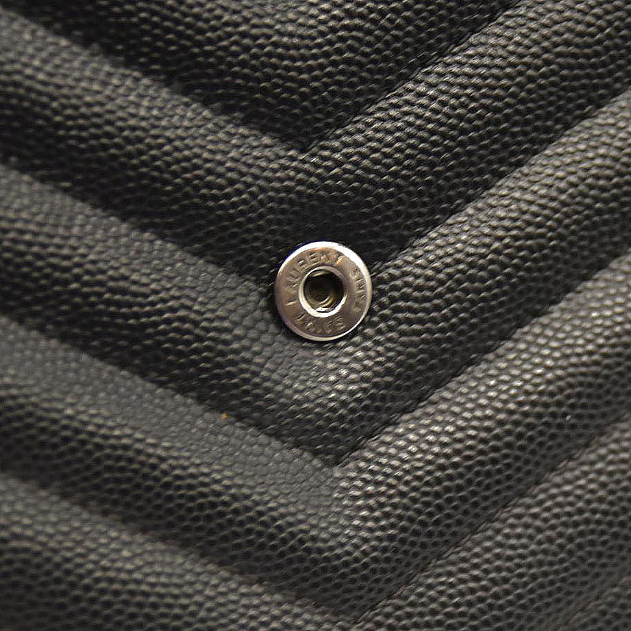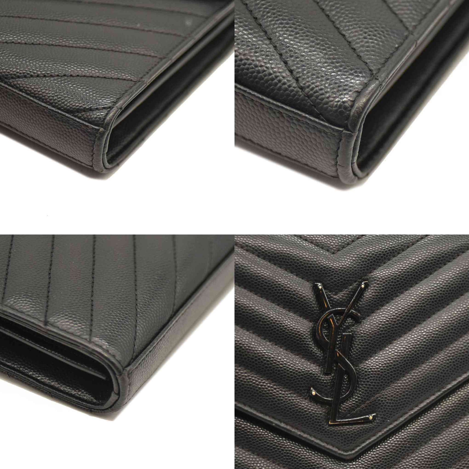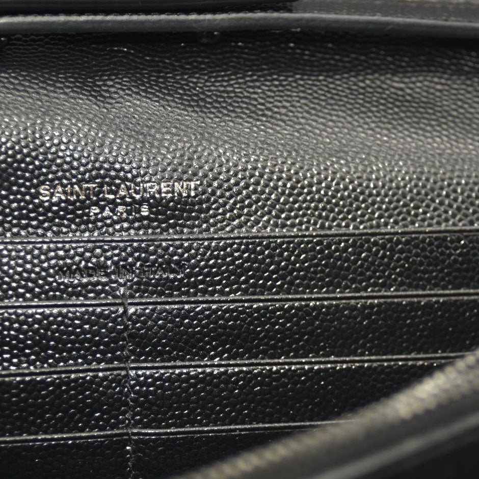 Saint Laurent Grain De Poudre Matelasse Chevron Monogram Monochrome Chain Wallet Black