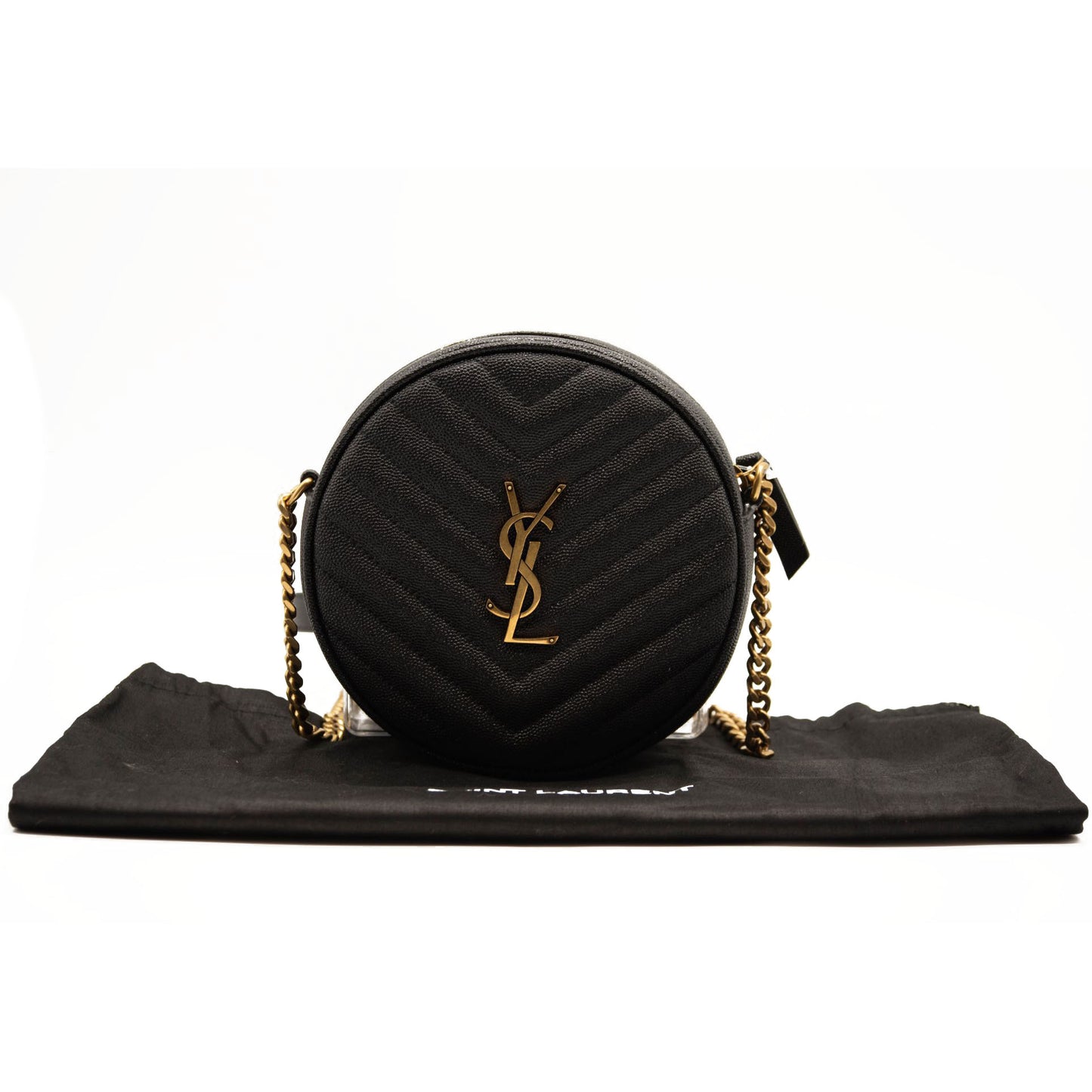 NEW SAINT LAURENT Grain De Poudre Matelasse Chevron Quilted Round Vinyle Camera Bag Black