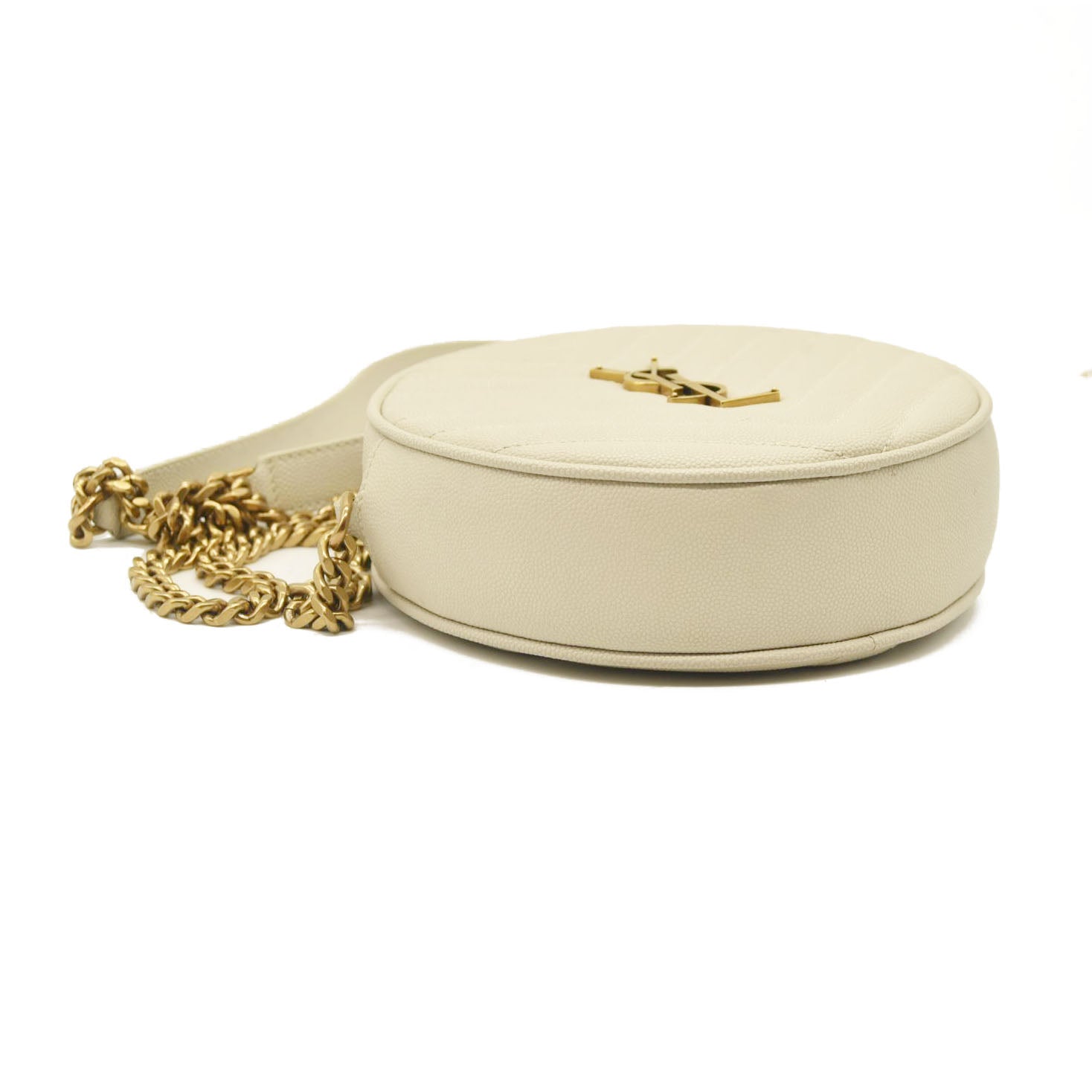 Saint Laurent Grain De Poudre Matelasse Chevron Quilted Round Vinyle Camera Bag Crema Soft