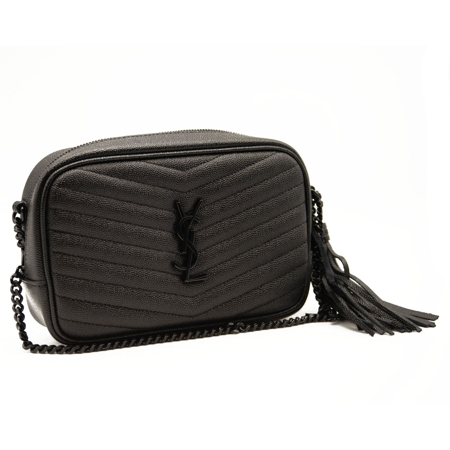 NEW SAINT LAURENT Grain De Poudre Matelasse Monogram Mini Lou Camera Bag Black