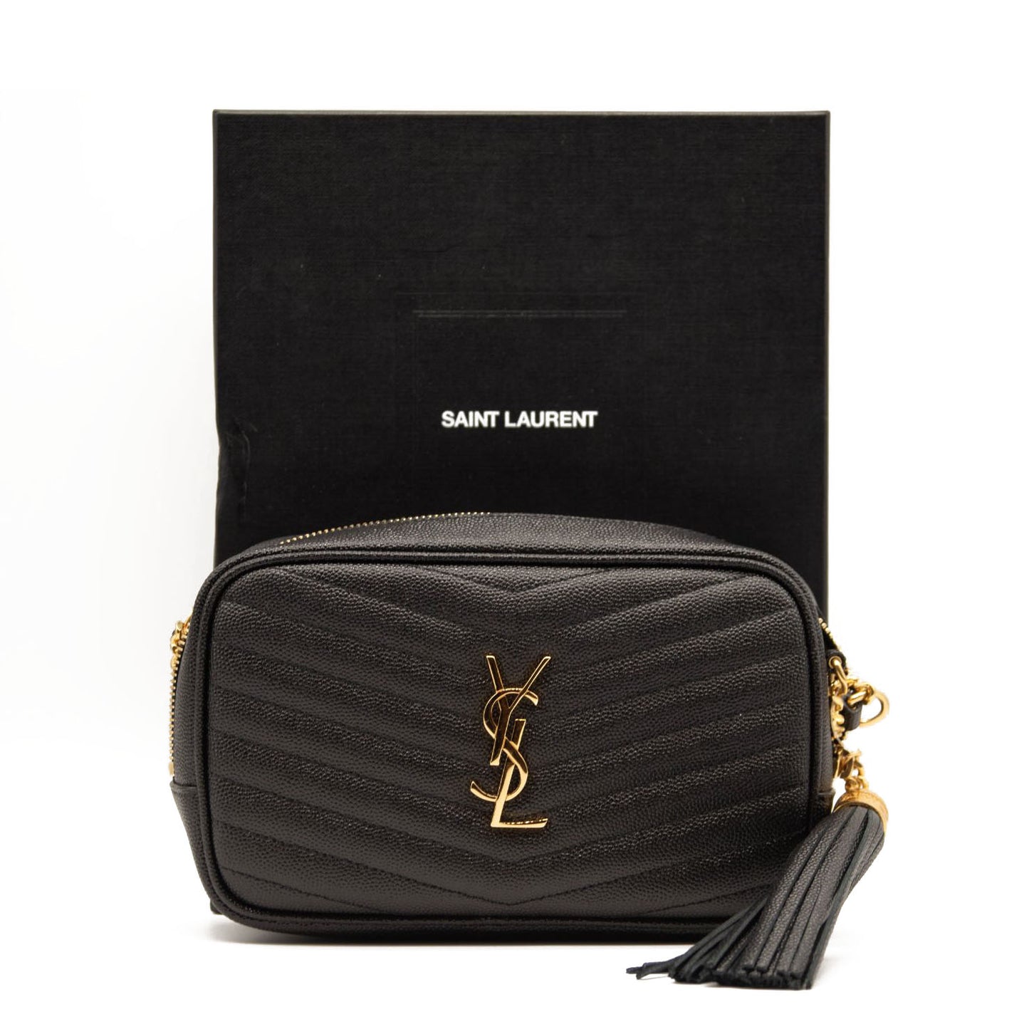 NEW SAINT LAURENT Grain De Poudre Matelasse Monogram Mini Lou Camera Bag Black