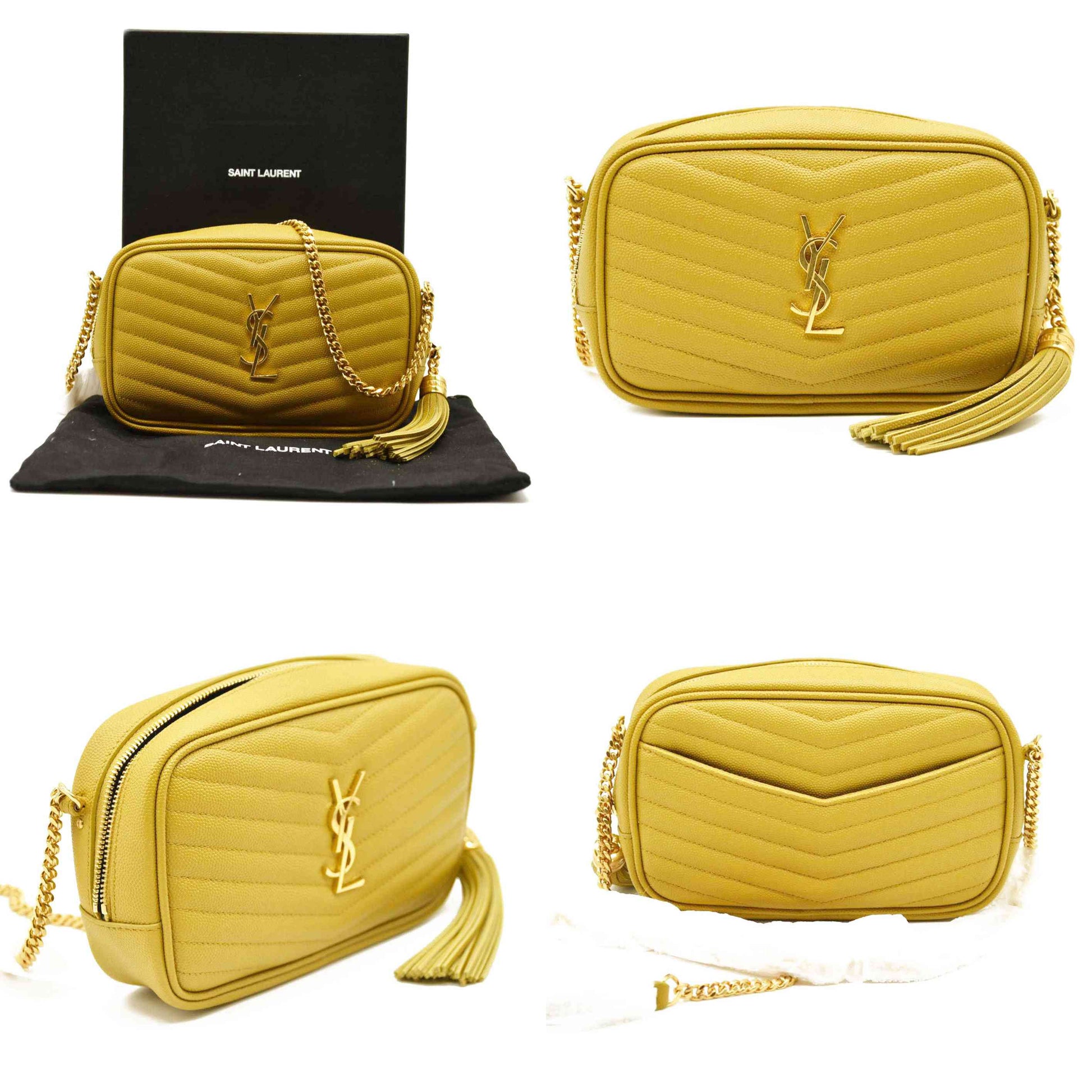 Saint Laurent Grain De Poudre Matelasse Monogram Mini Lou Camera Bag Sunflower