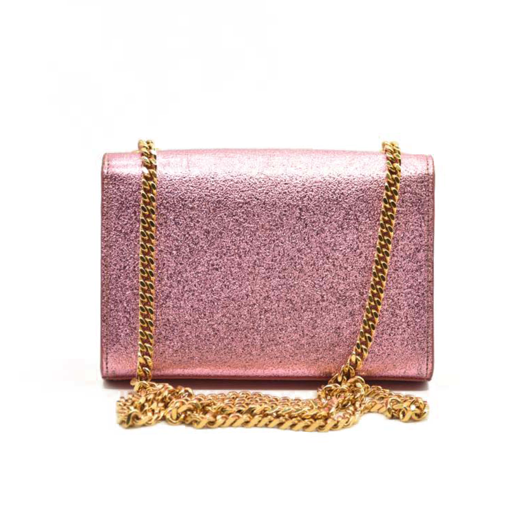 SAINT LAURENT Grain De Poudre Small Metallic Monogram Kate Satchel Old Rose