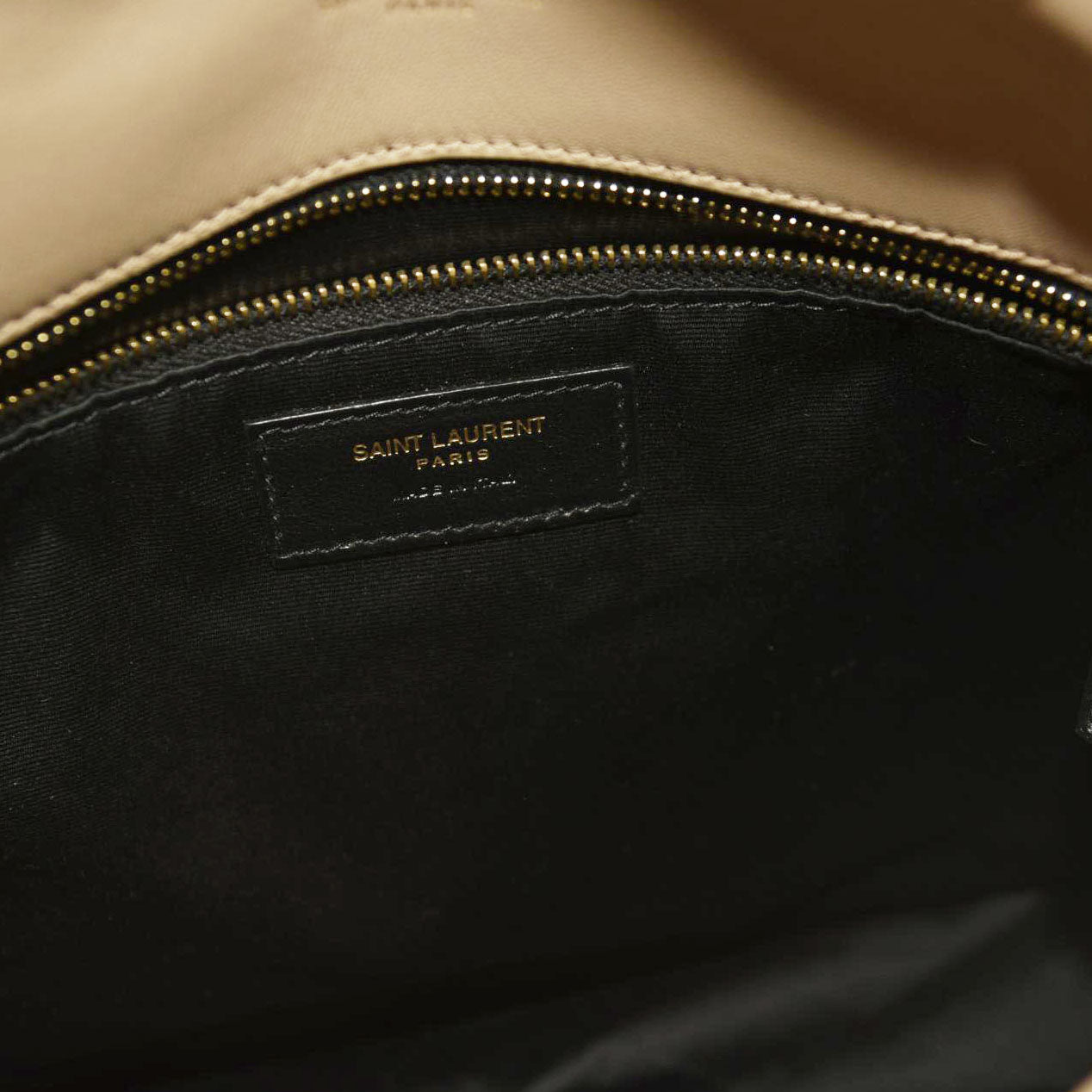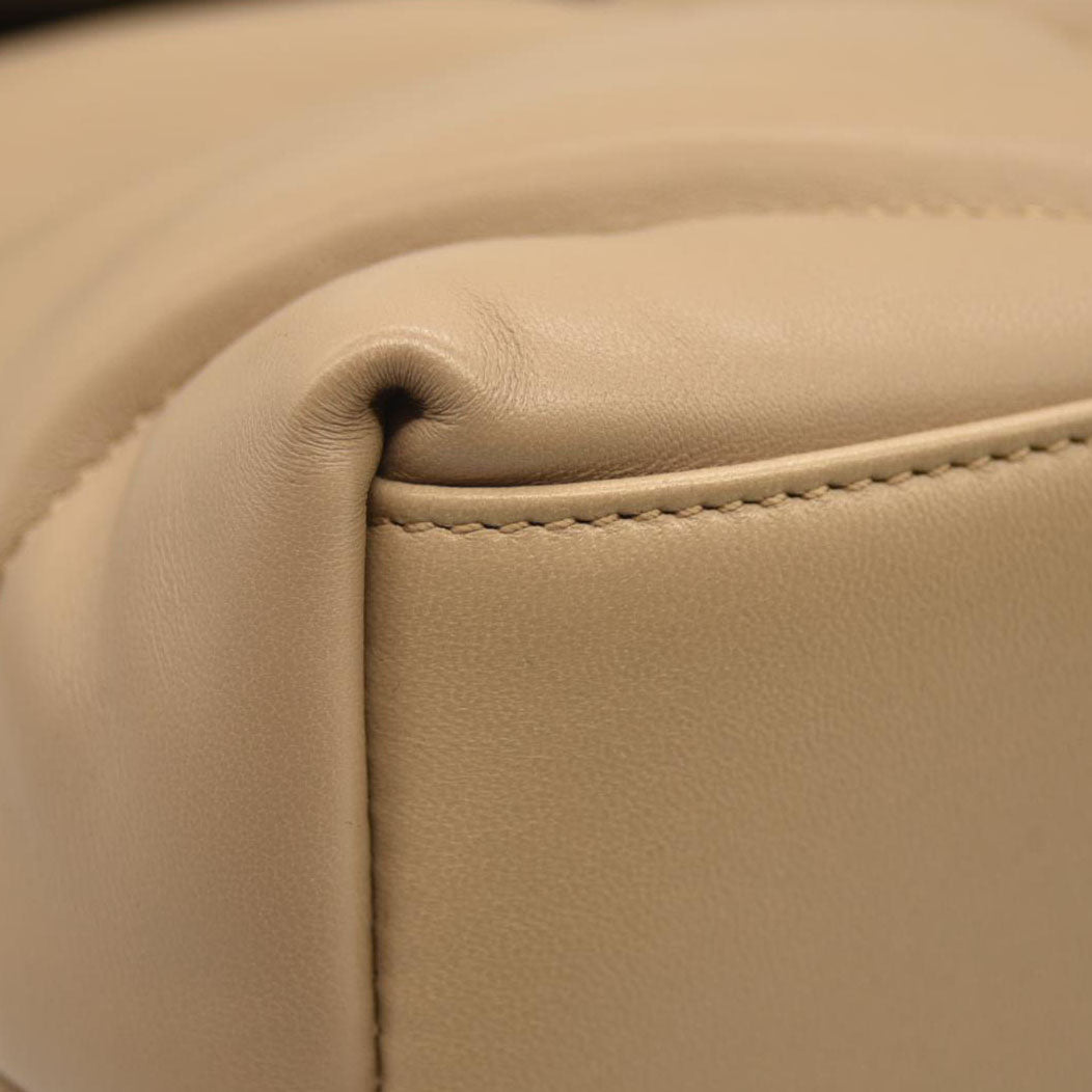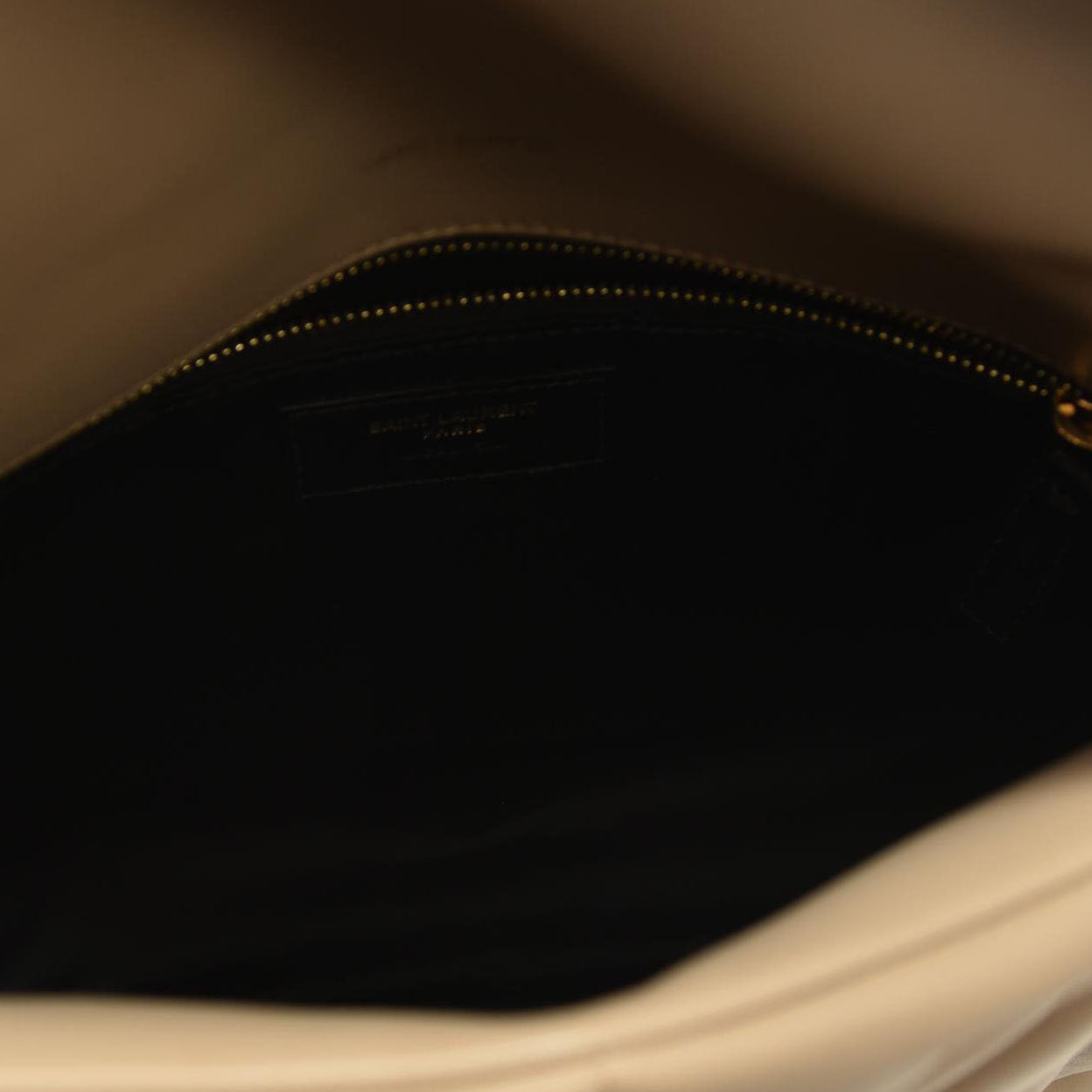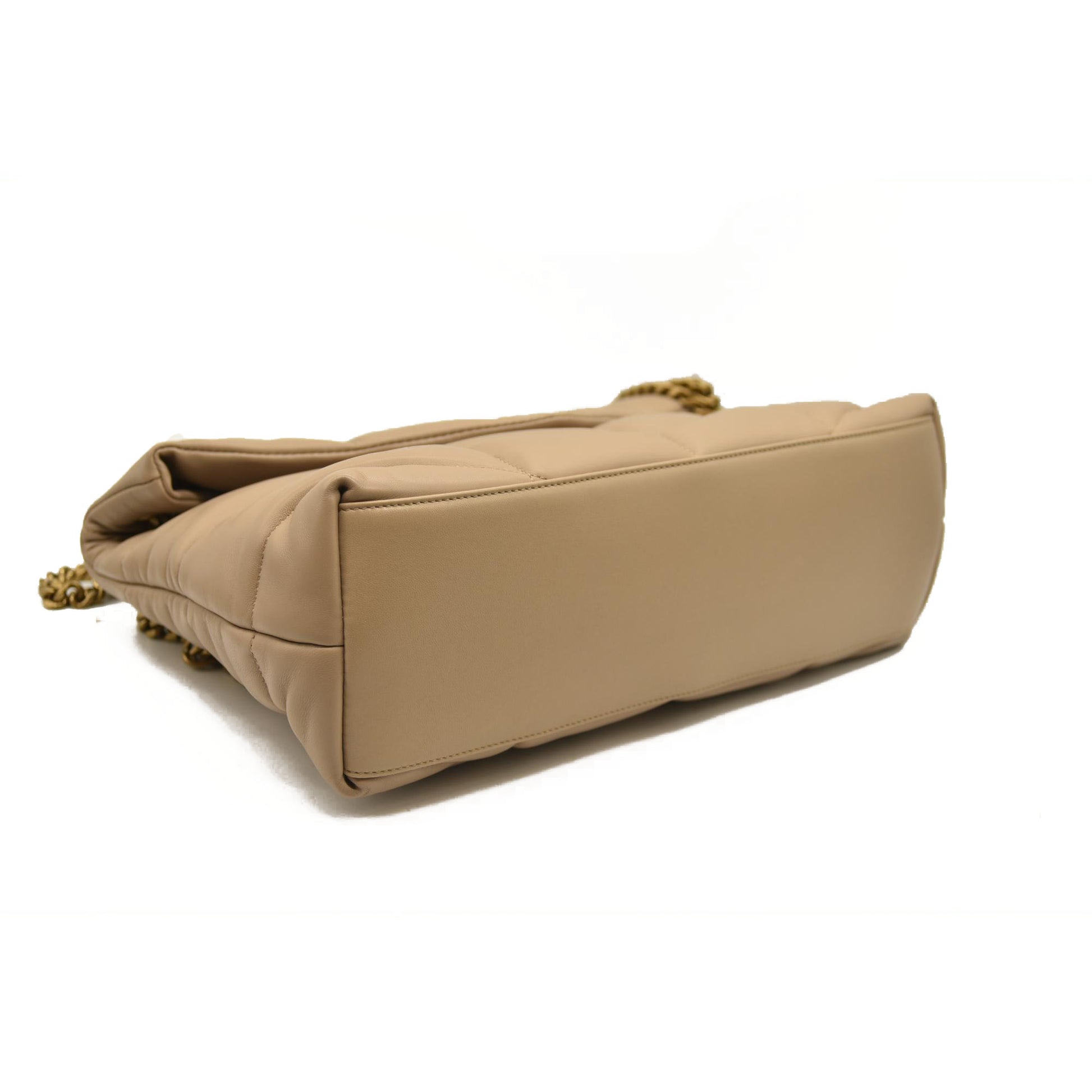SAINT LAURENT Lambskin Quilted Medium Loulou Puffer Monogram Chain Satchel Dark Beige