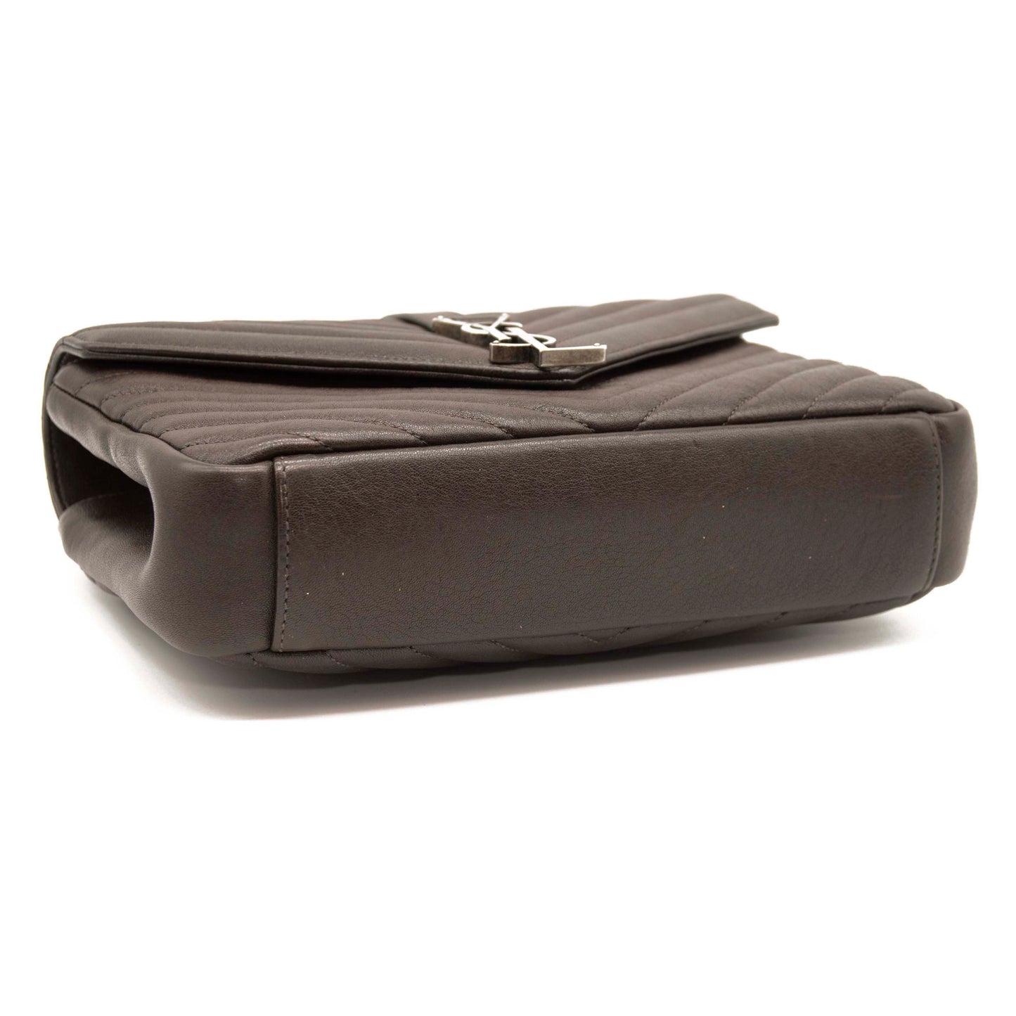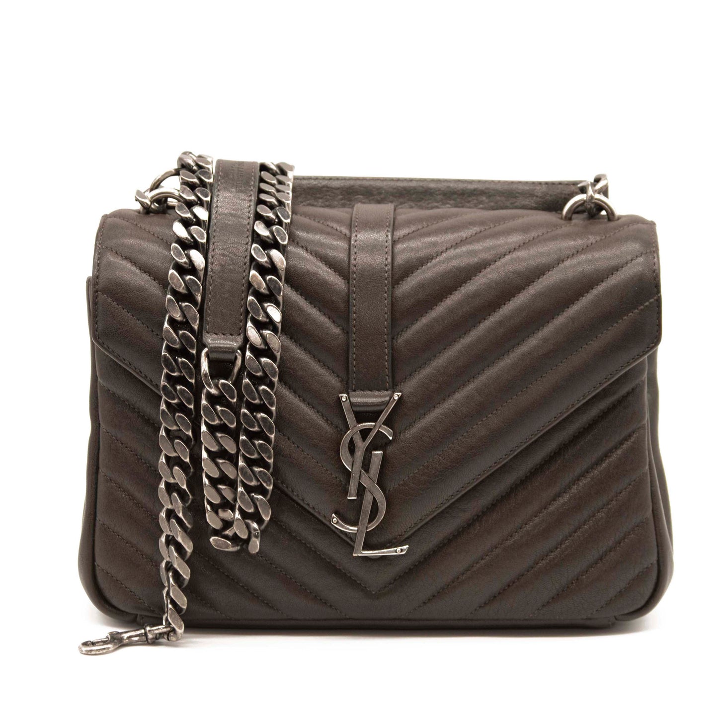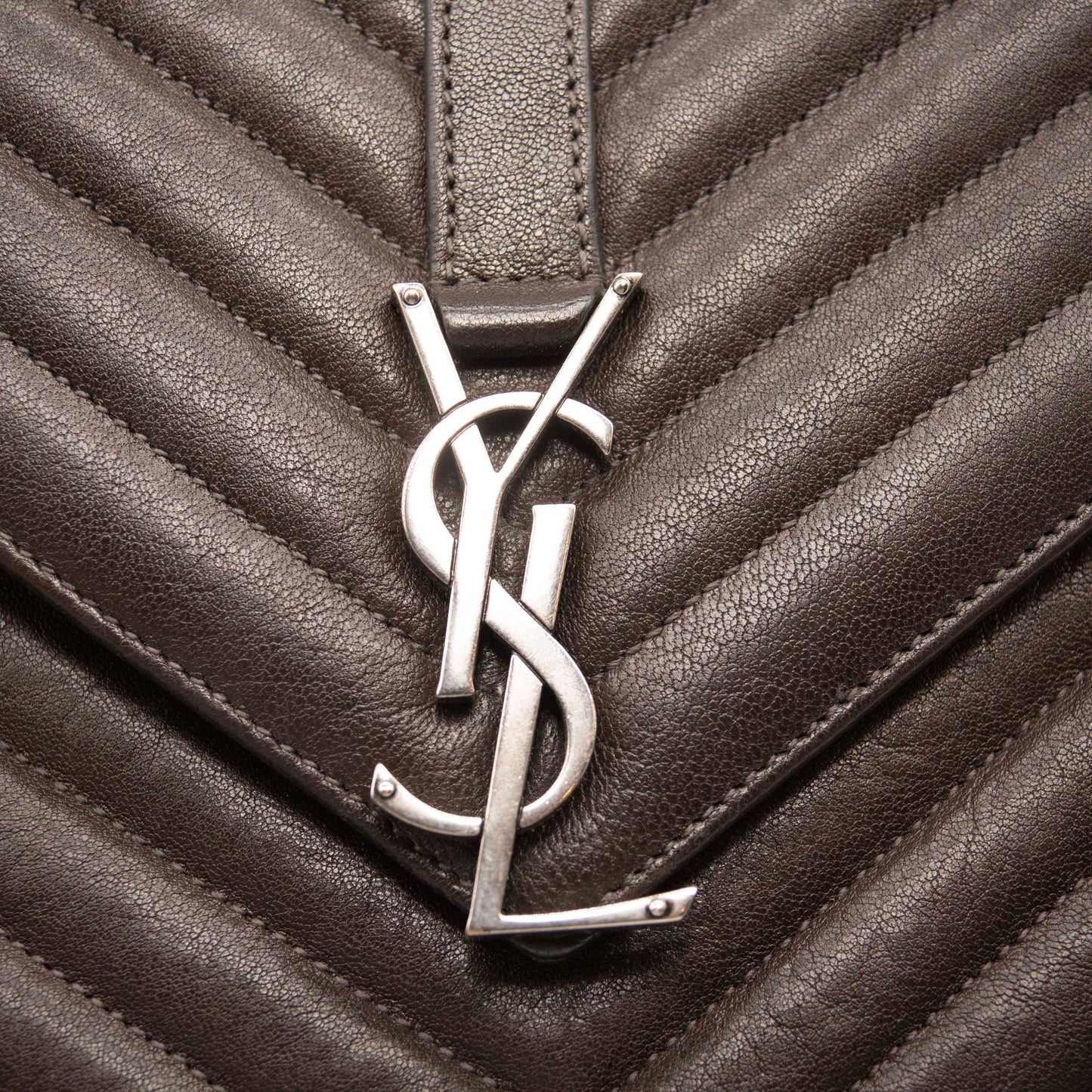 Saint Laurent Sheepskin Matelasse Chevron Monogram Medium College Bag Grey