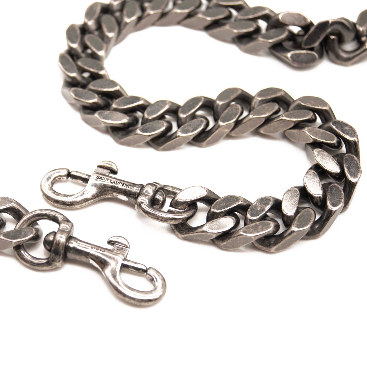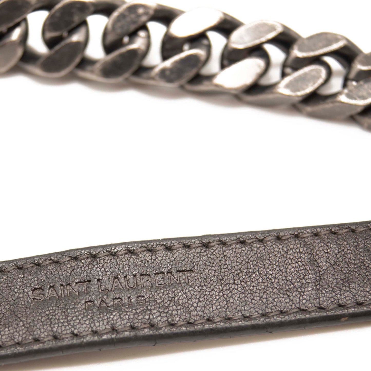 This is an authentic SAINT LAURENT Sheepskin Matelasse Chevron Monogram Medium College Bag in Grey. This elegant shoulder bag features chic chevron quilted sheepskin leather in Grey. The bag has an optional aged silver chain-link shoulder strap with a leather shoulder pad, rear patch pocket, and leather top handle. The frontal flap features a prominent aged silver YSL monogram detail and opens to a partitioned grey fabric and leather interior with a central zippered pocket and patch pocket.