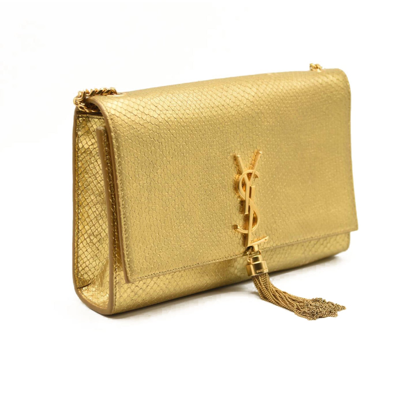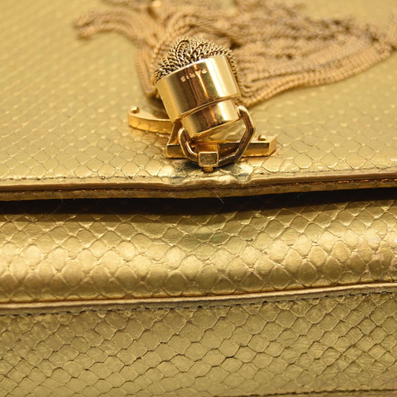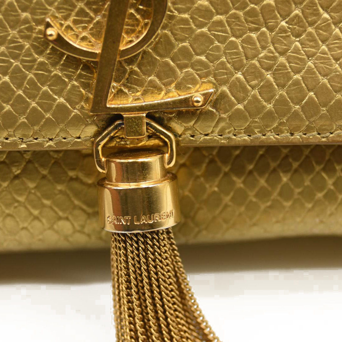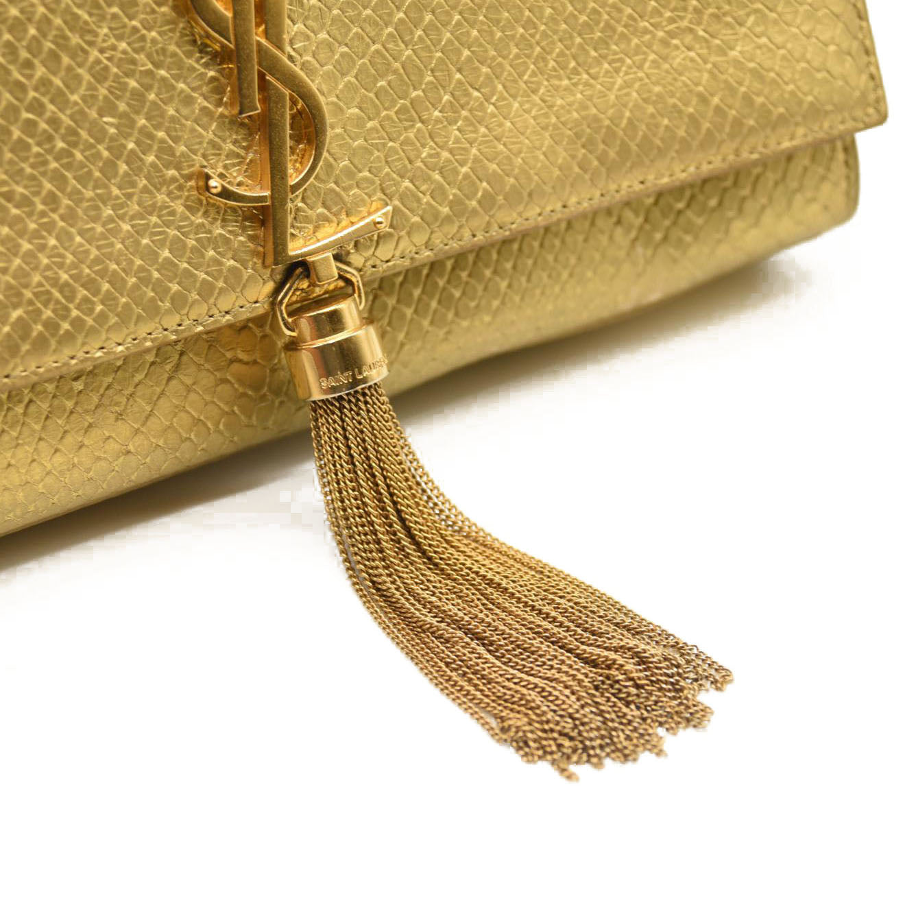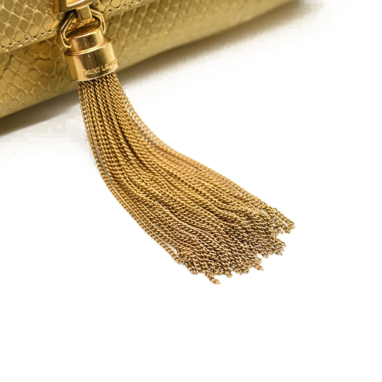 Saint Laurent Metallic Python Embossed Medium Classic Monogram Kate Tassel Satchel Gold