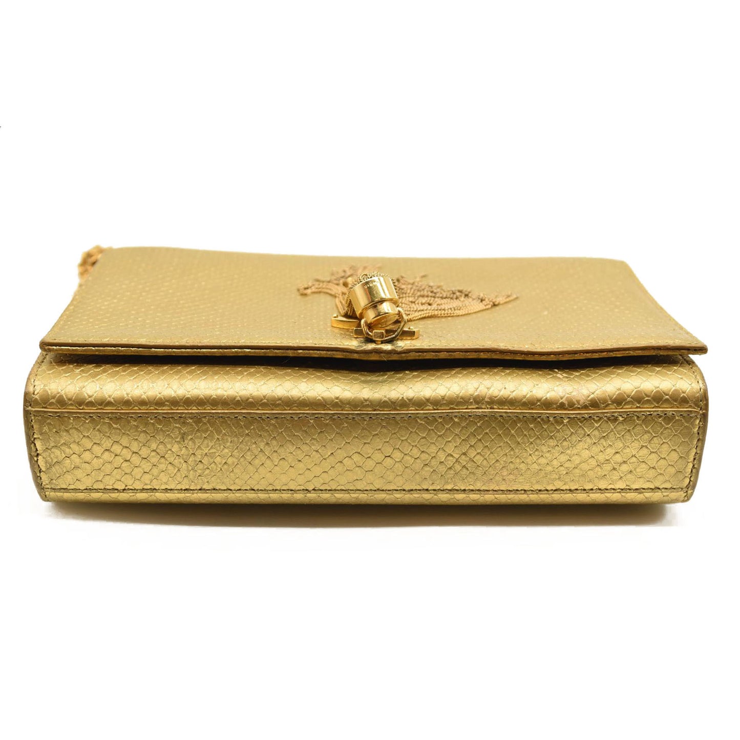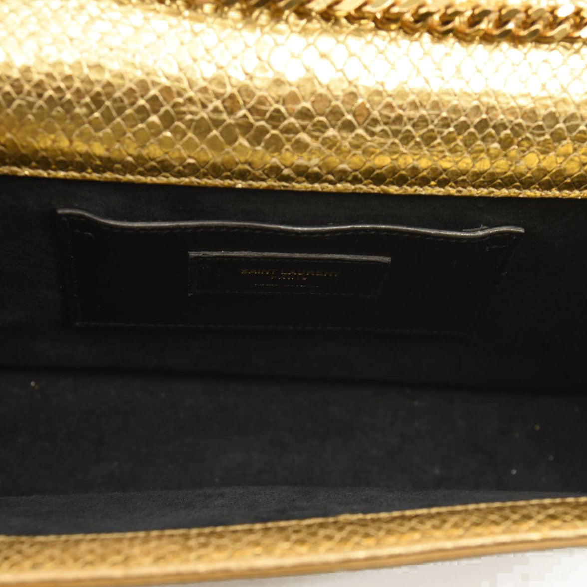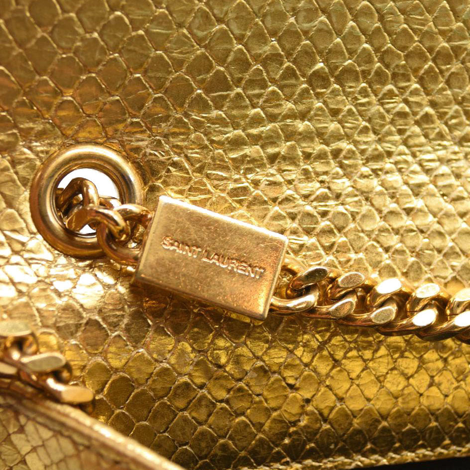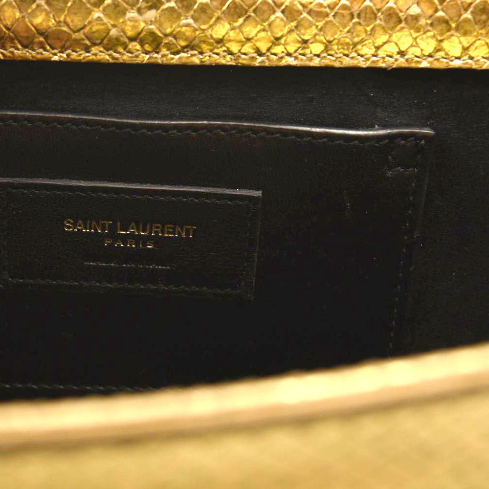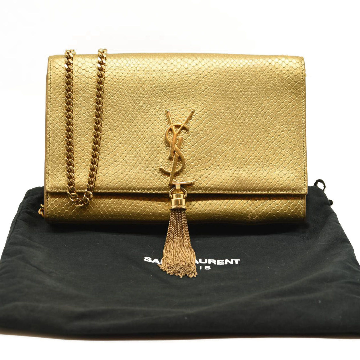 Saint Laurent Metallic Python Embossed Medium Classic Monogram Kate Tassel Satchel Gold