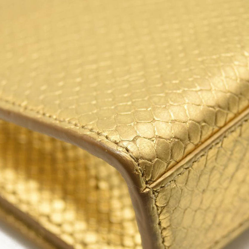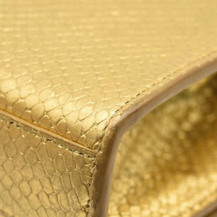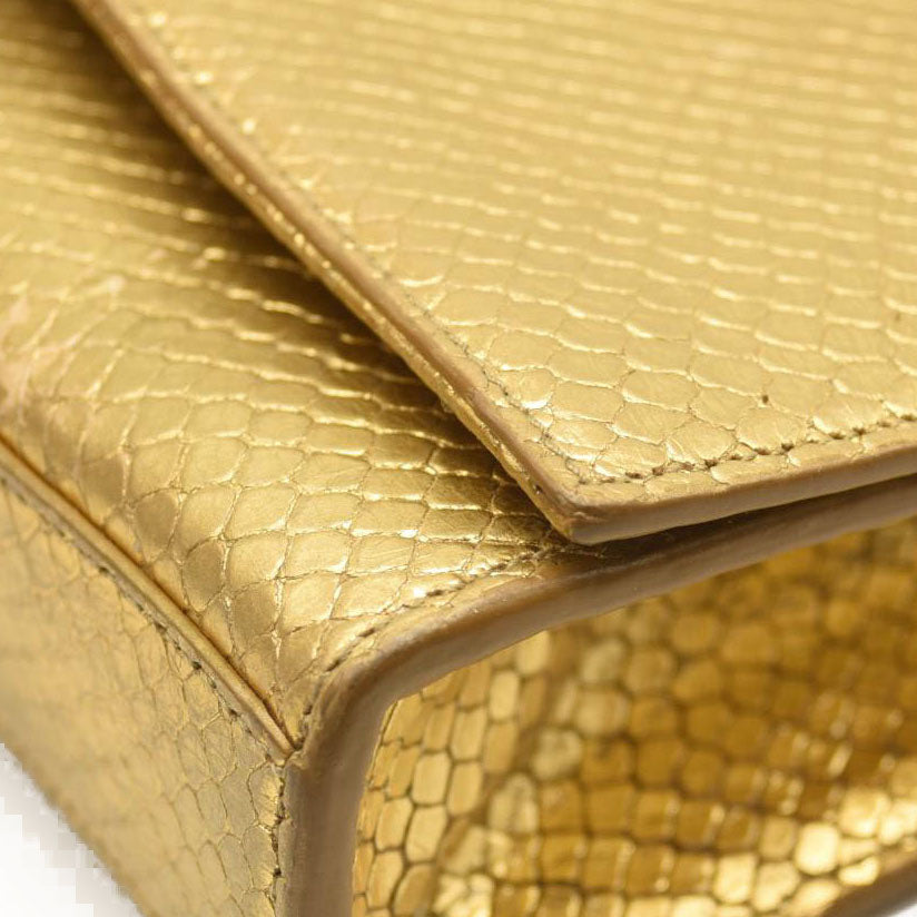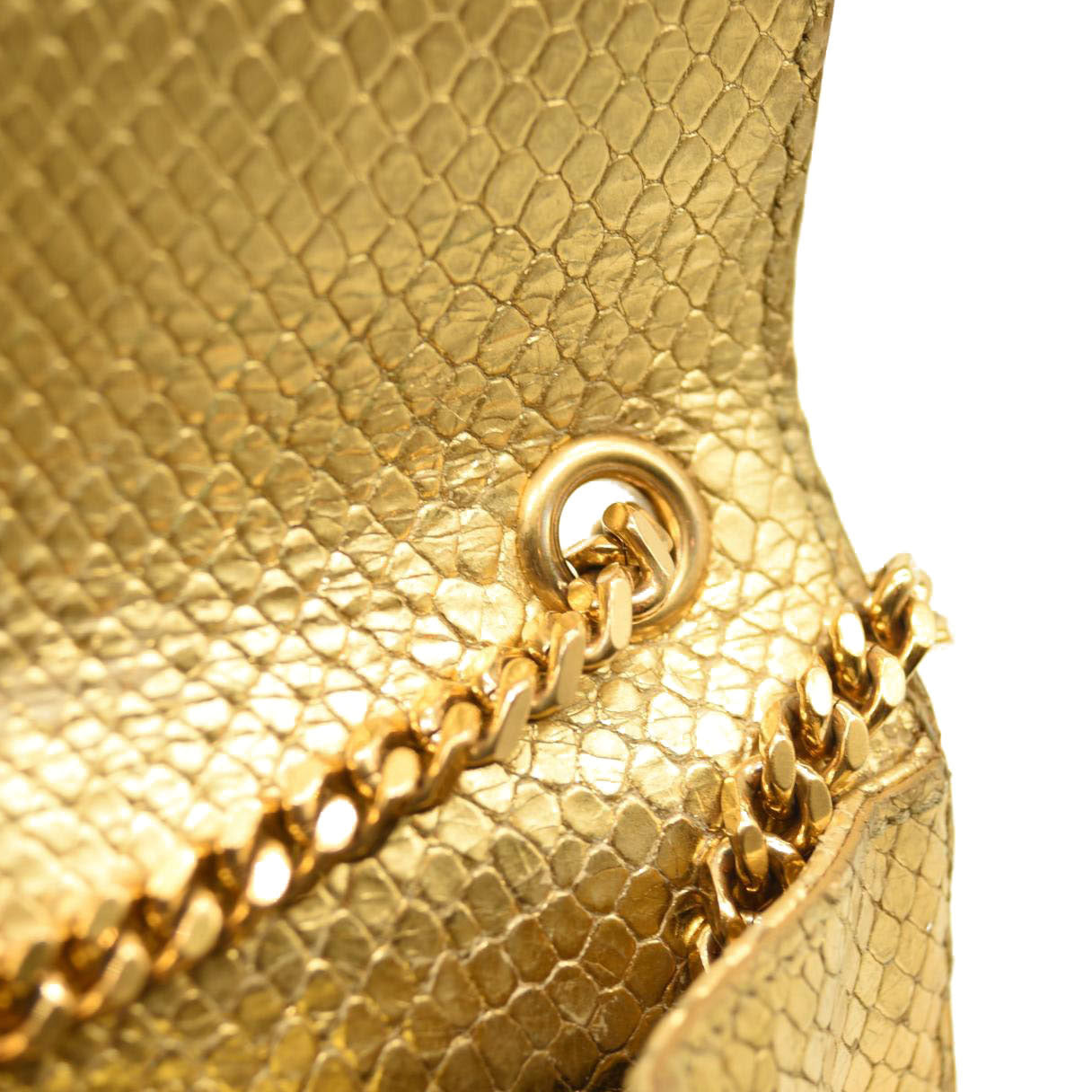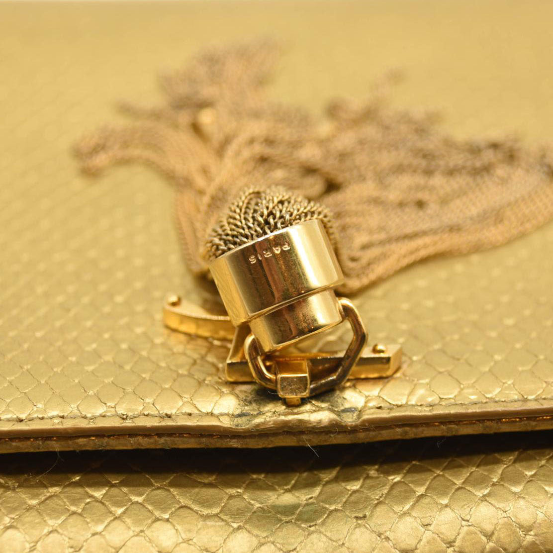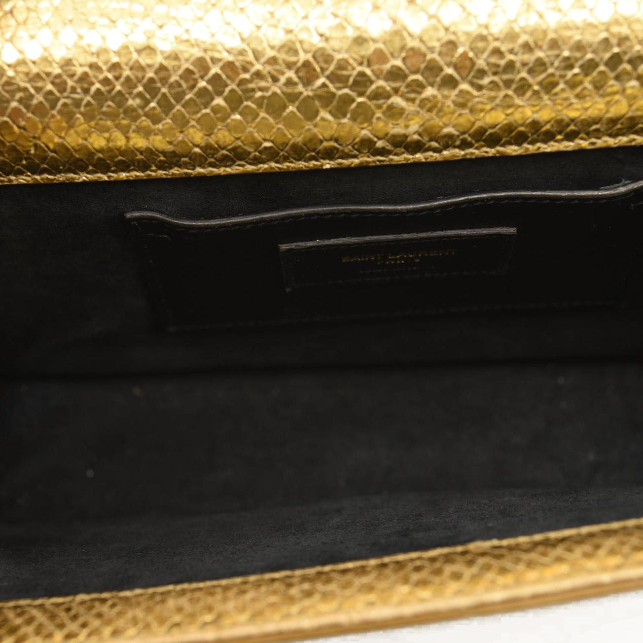 Saint Laurent Metallic Python Embossed Medium Classic Monogram Kate Tassel Satchel Gold