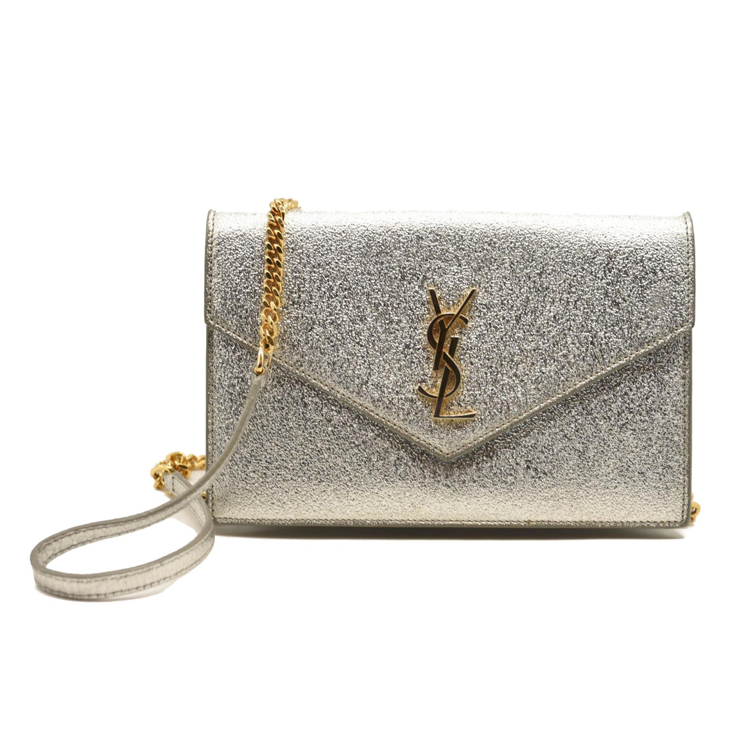 Saint Laurent Monogram Metallic Leather Wallet-on-Chain Bag Silver