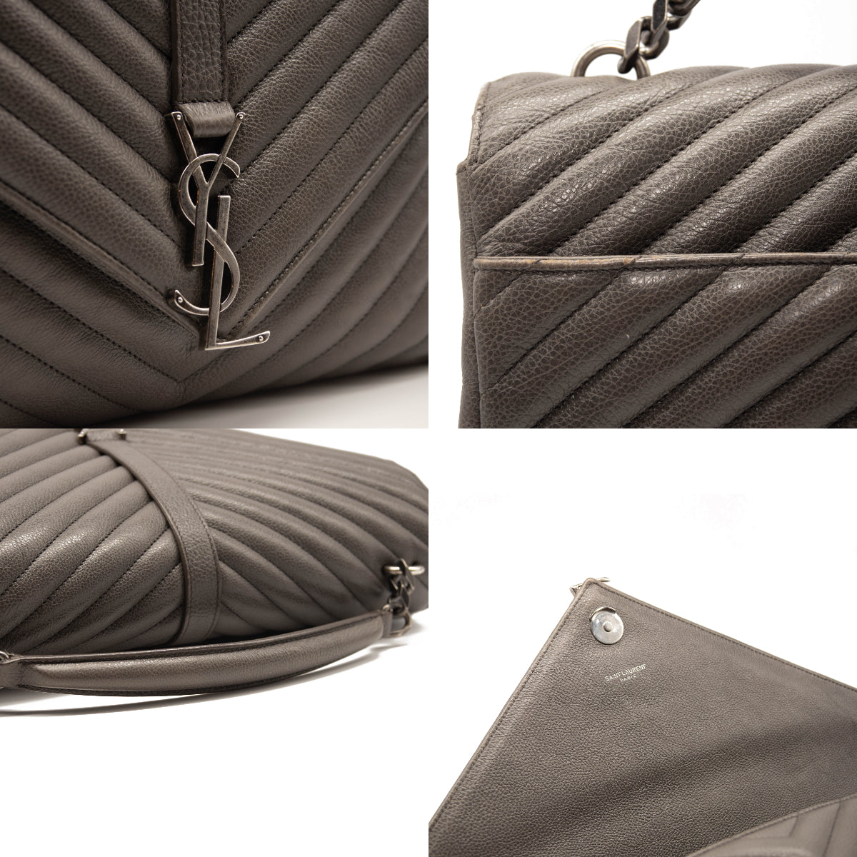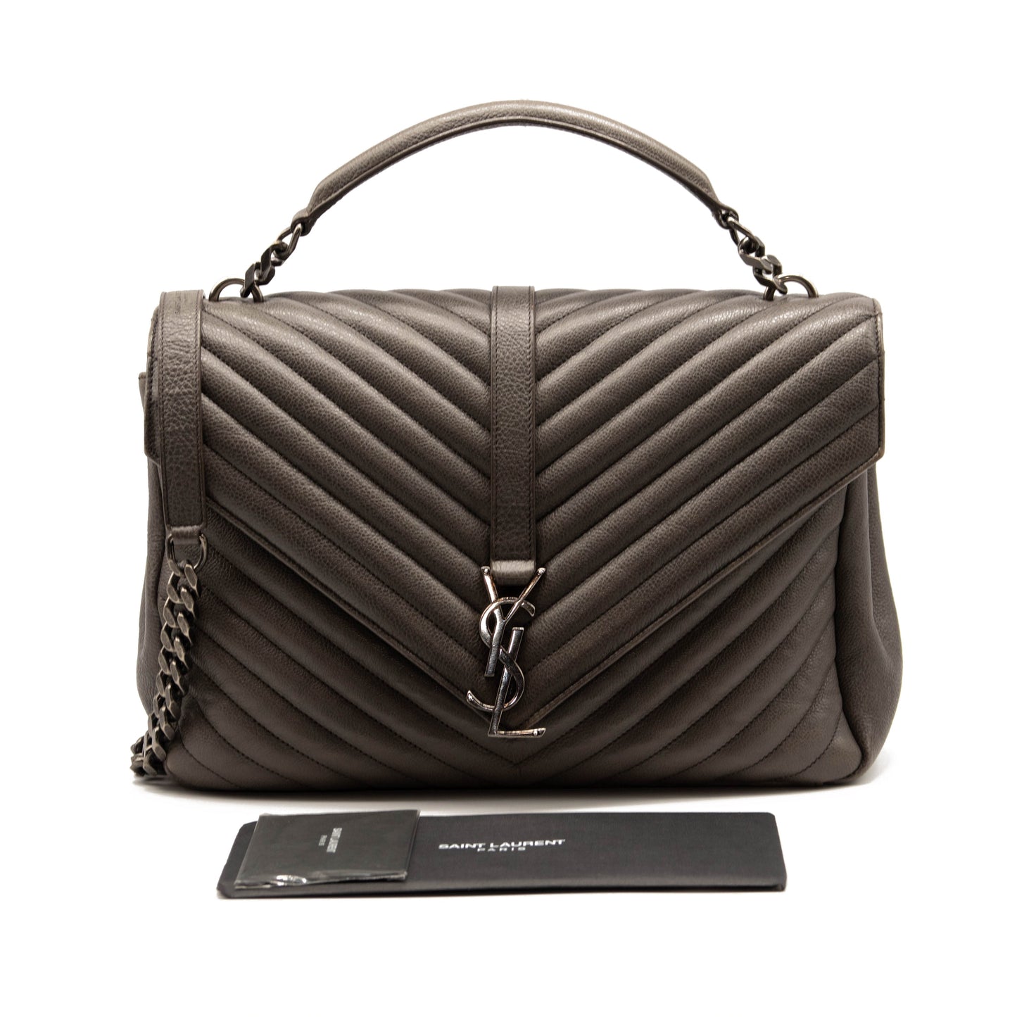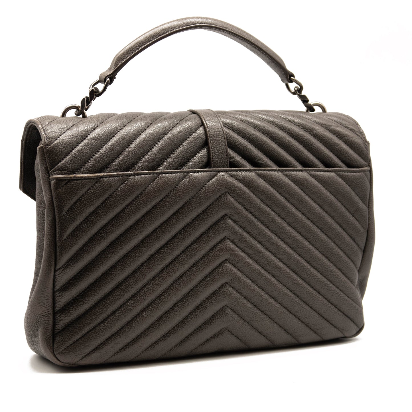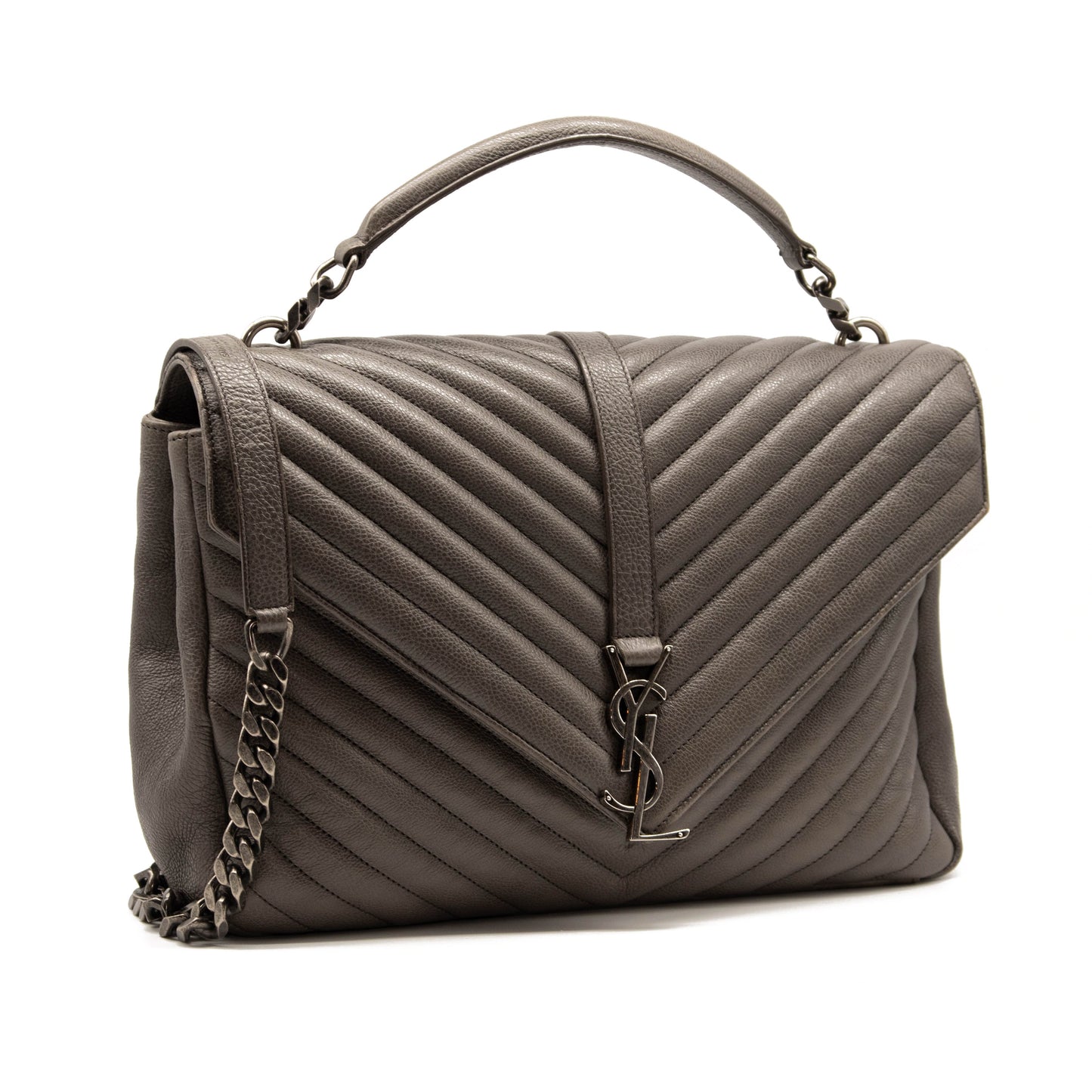 Saint Laurent Sheepskin Matelasse Chevron Monogram Large College Satchel Dark Anthracite