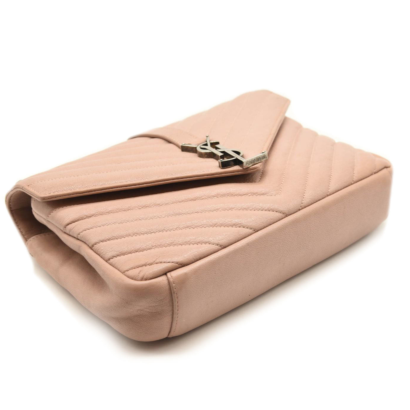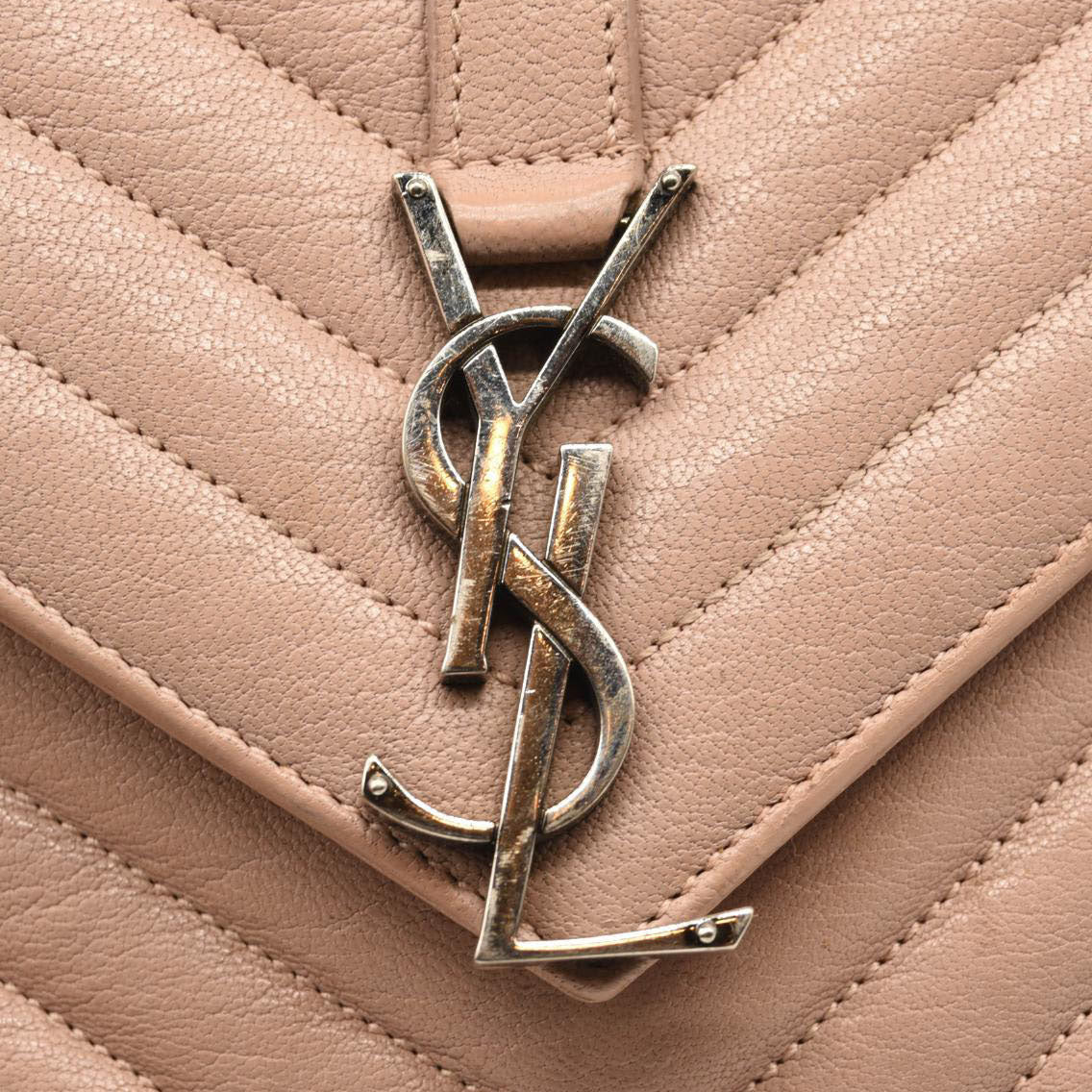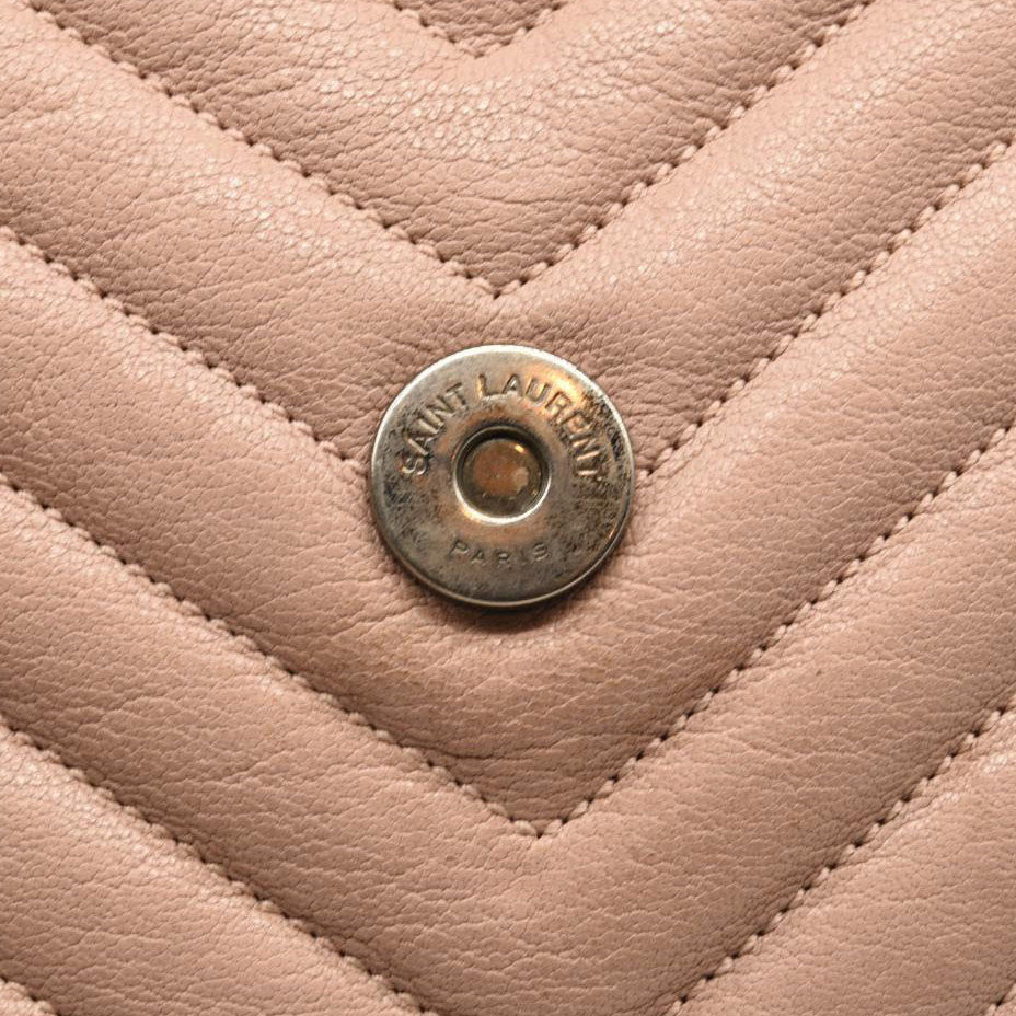 SAINT LAURENT Sheepskin Matelasse Chevron Monogram Medium College Bag Rose Poudre