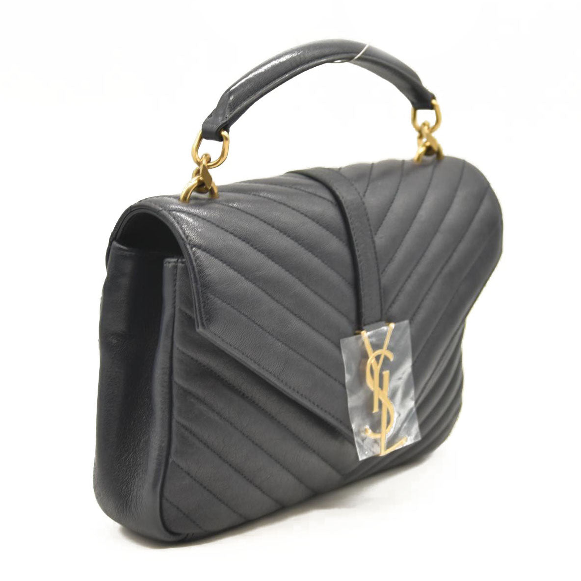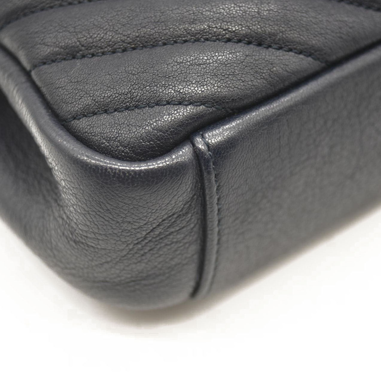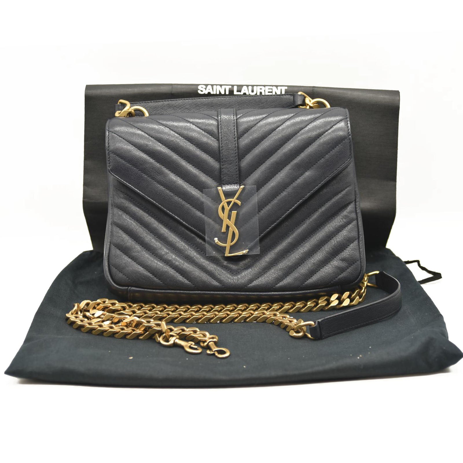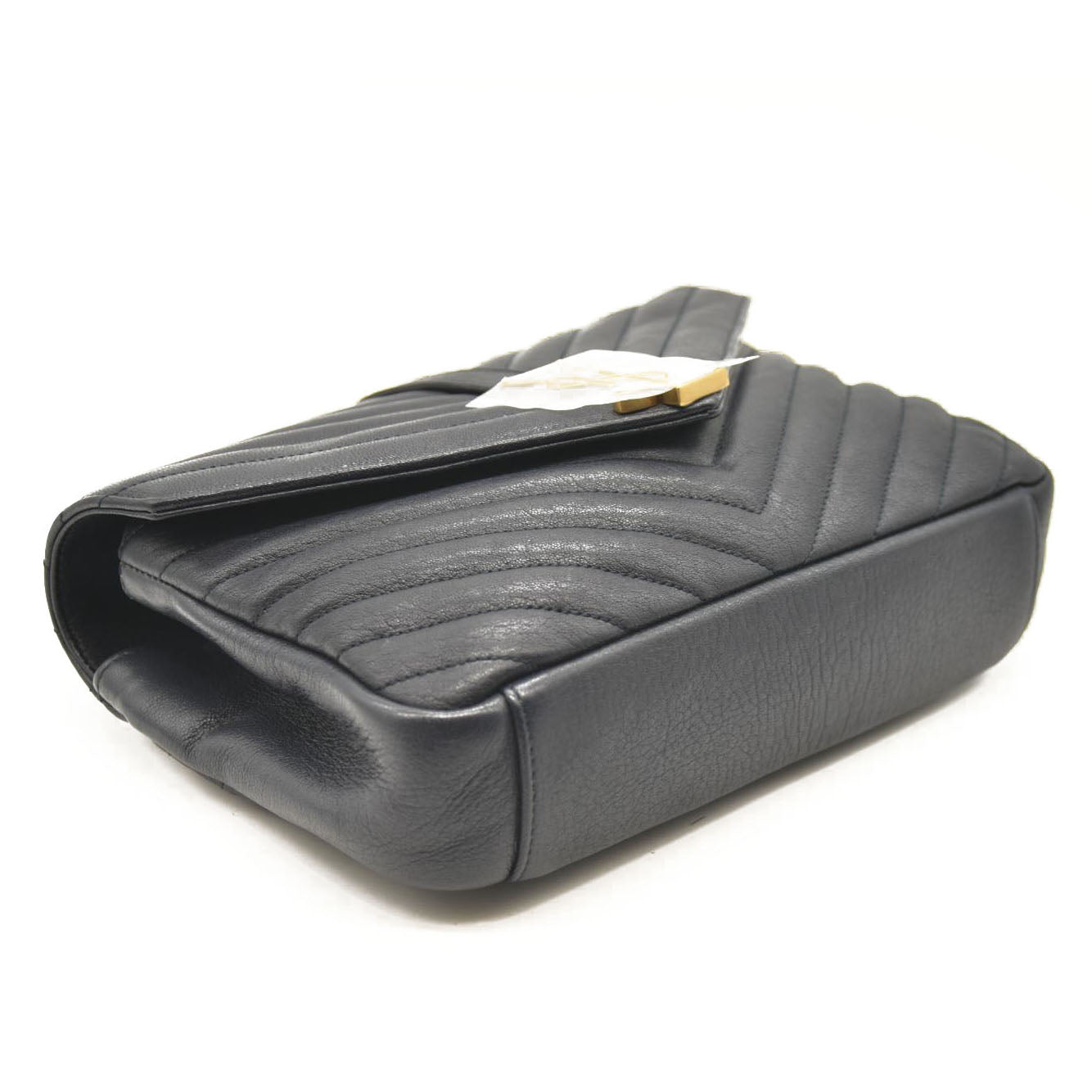 SAINT LAURENT Sheepskin Matelasse Monogram Medium College Bag Navy