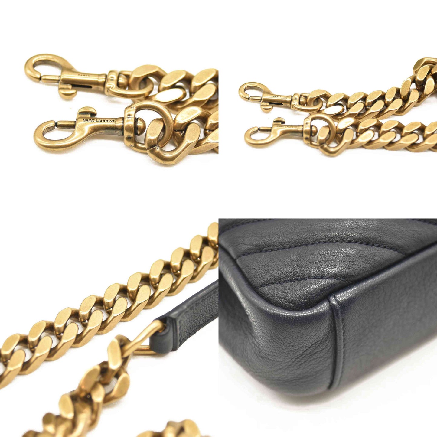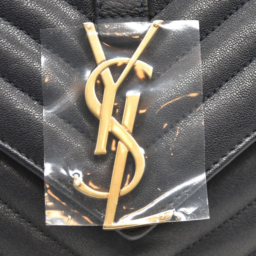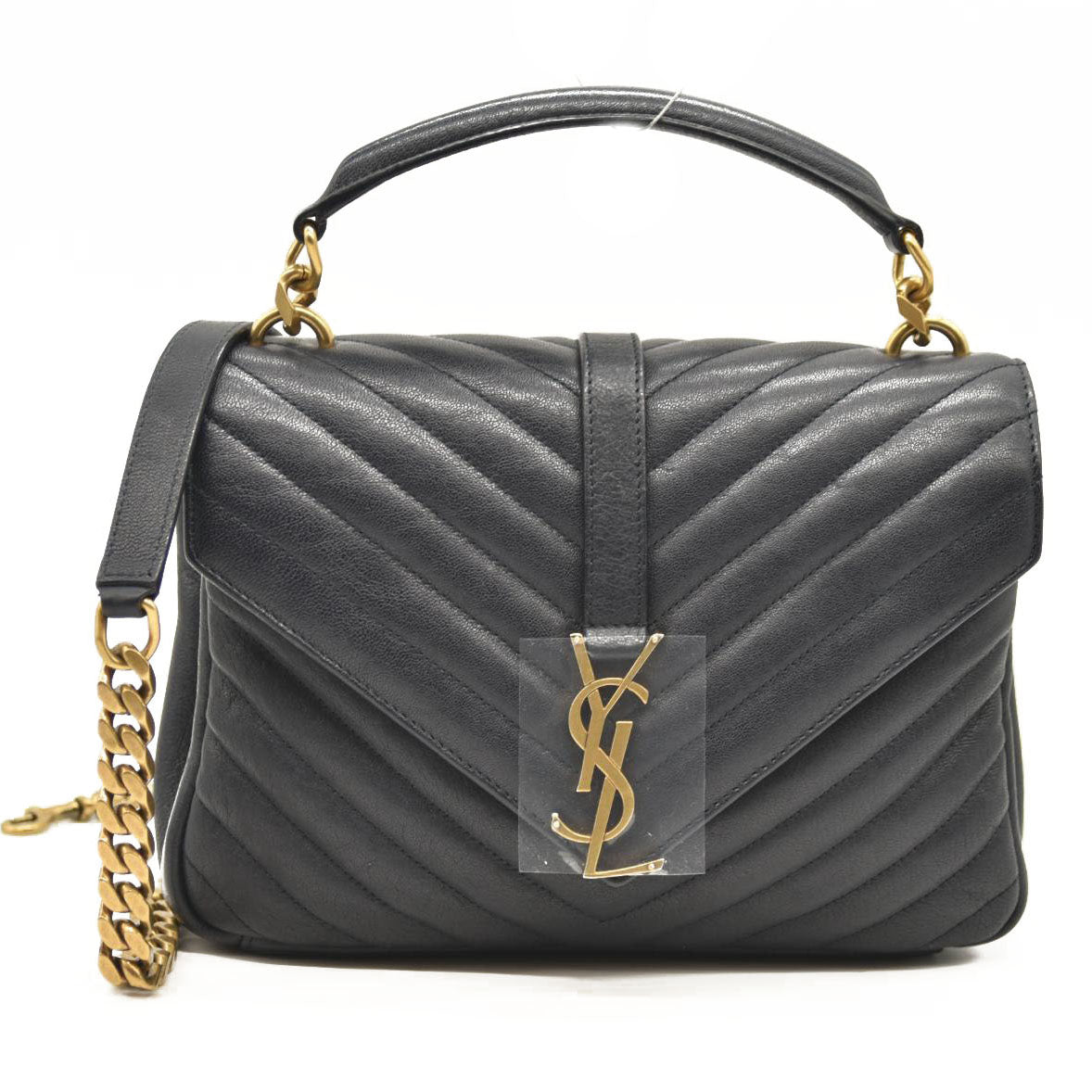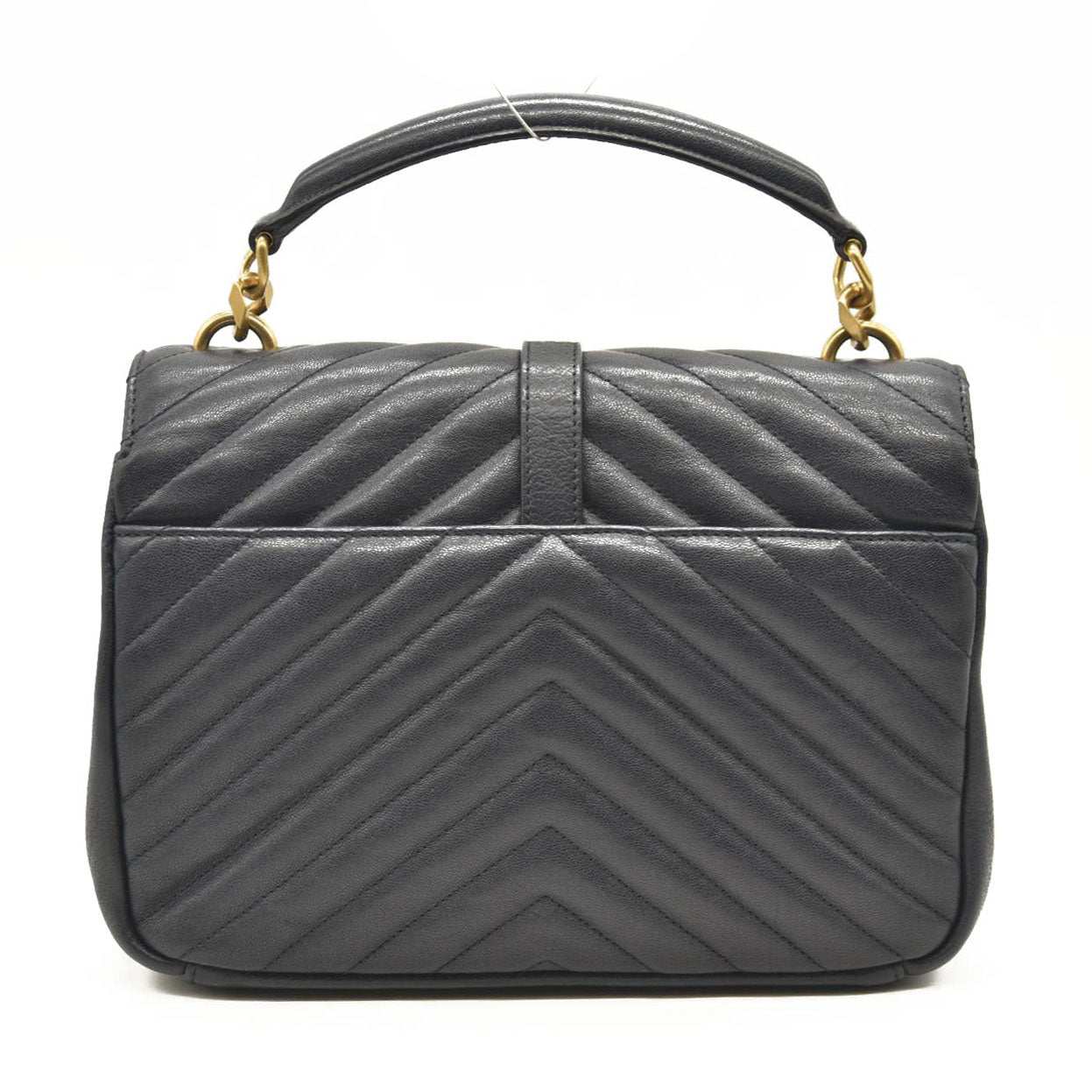 SAINT LAURENT Sheepskin Matelasse Monogram Medium College Bag Navy