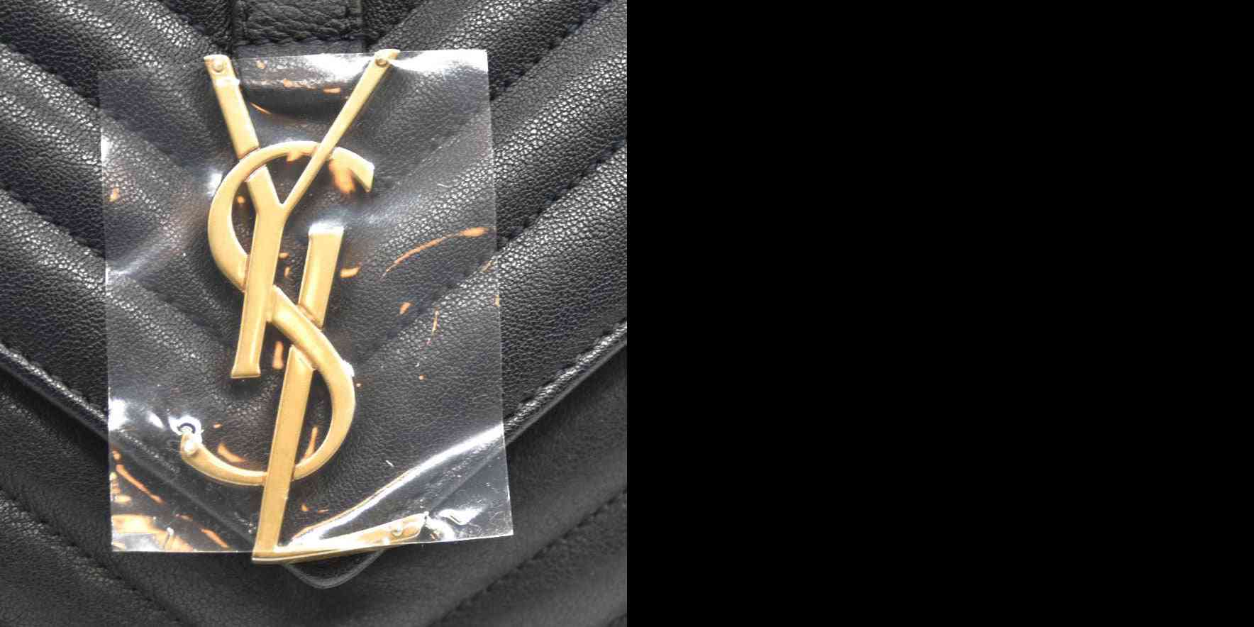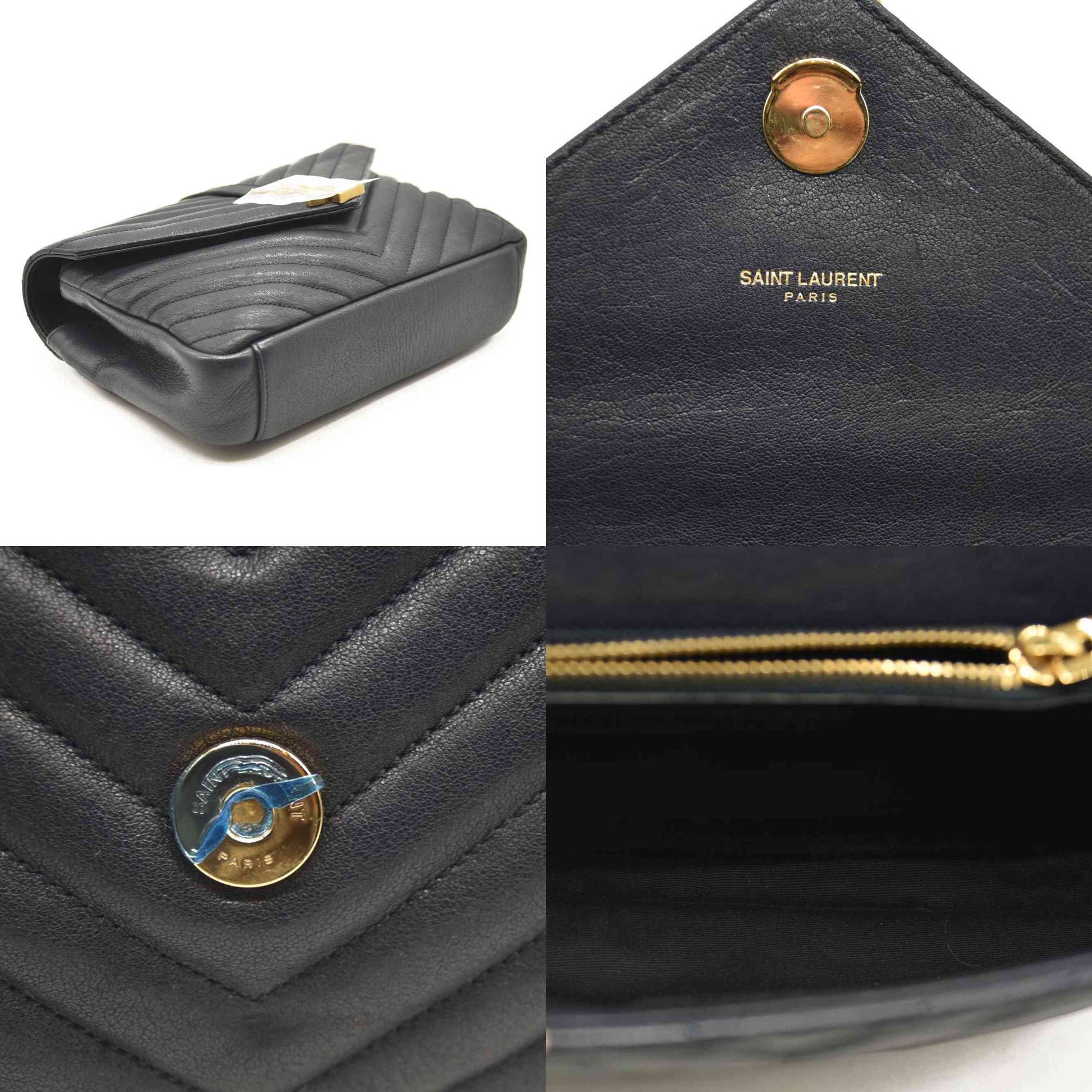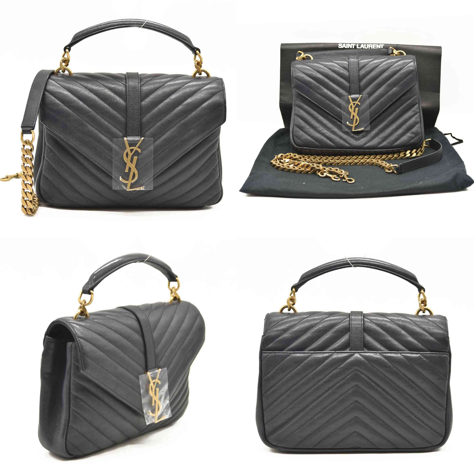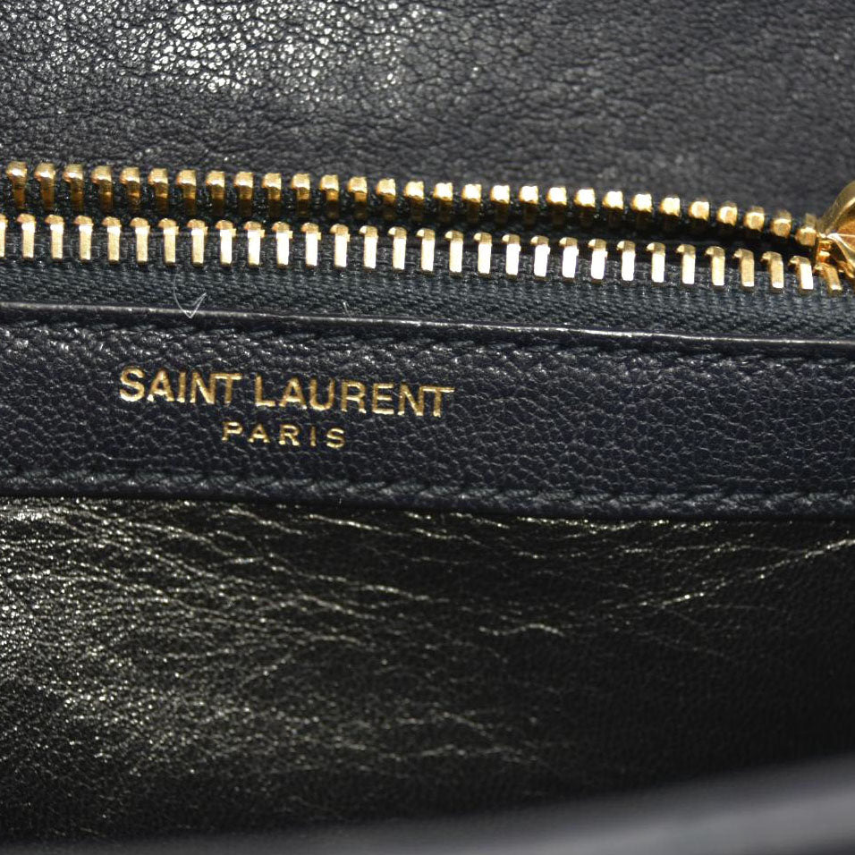 SAINT LAURENT Sheepskin Matelasse Monogram Medium College Bag Navy