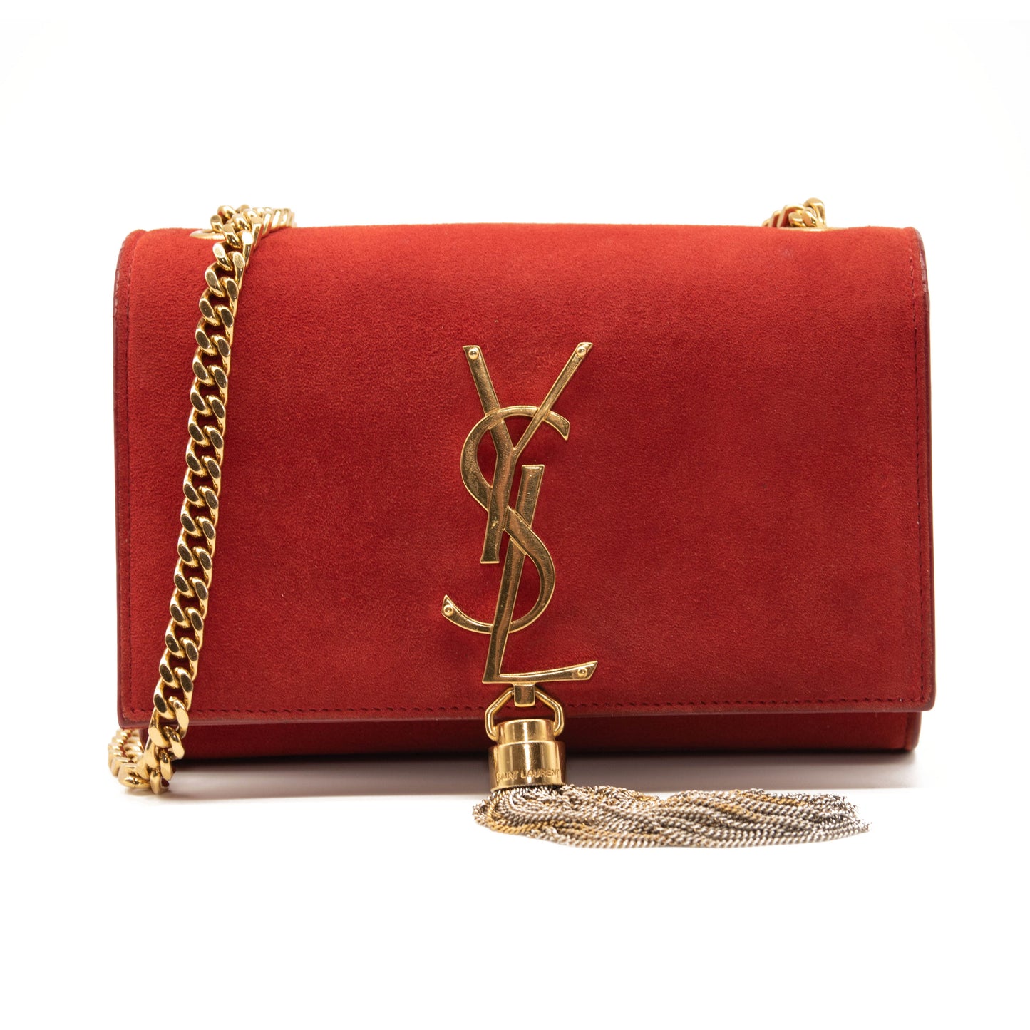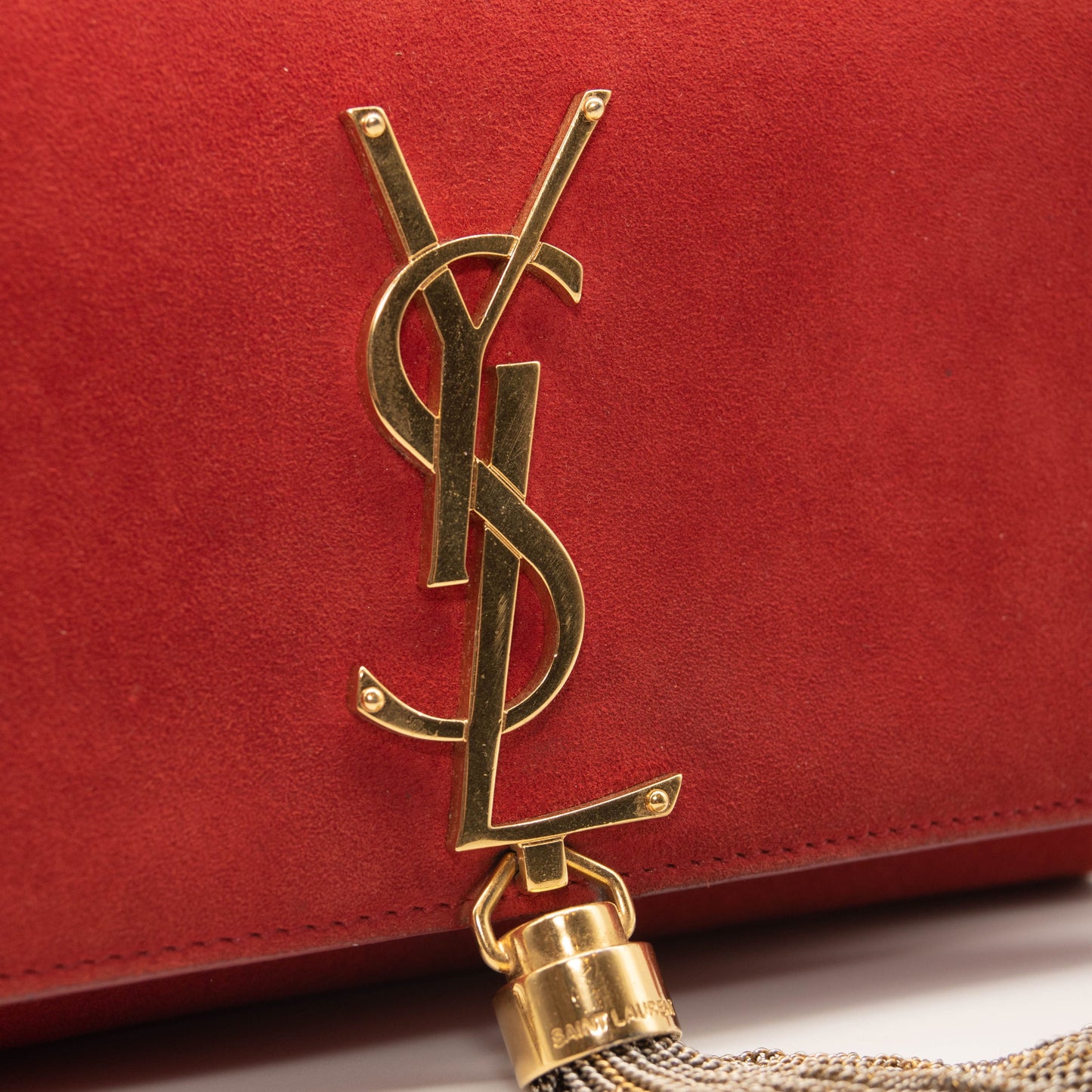 Saint Laurent Suede Small Classic Monogram Kate Tassel Satchel Red