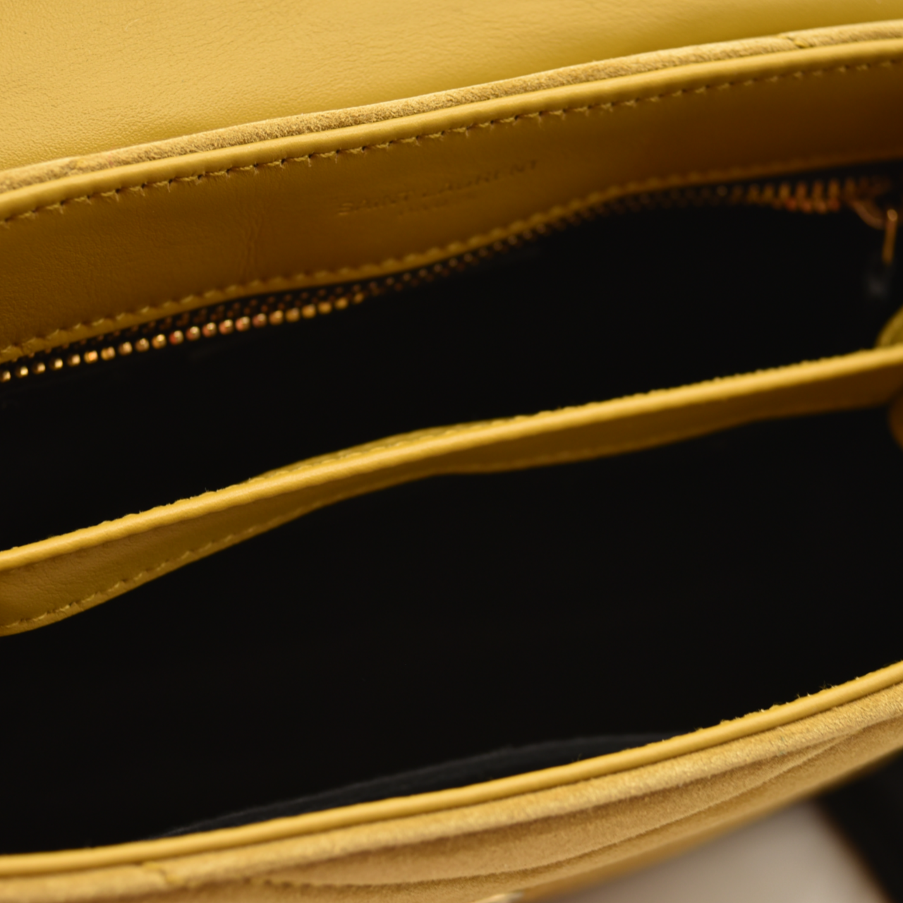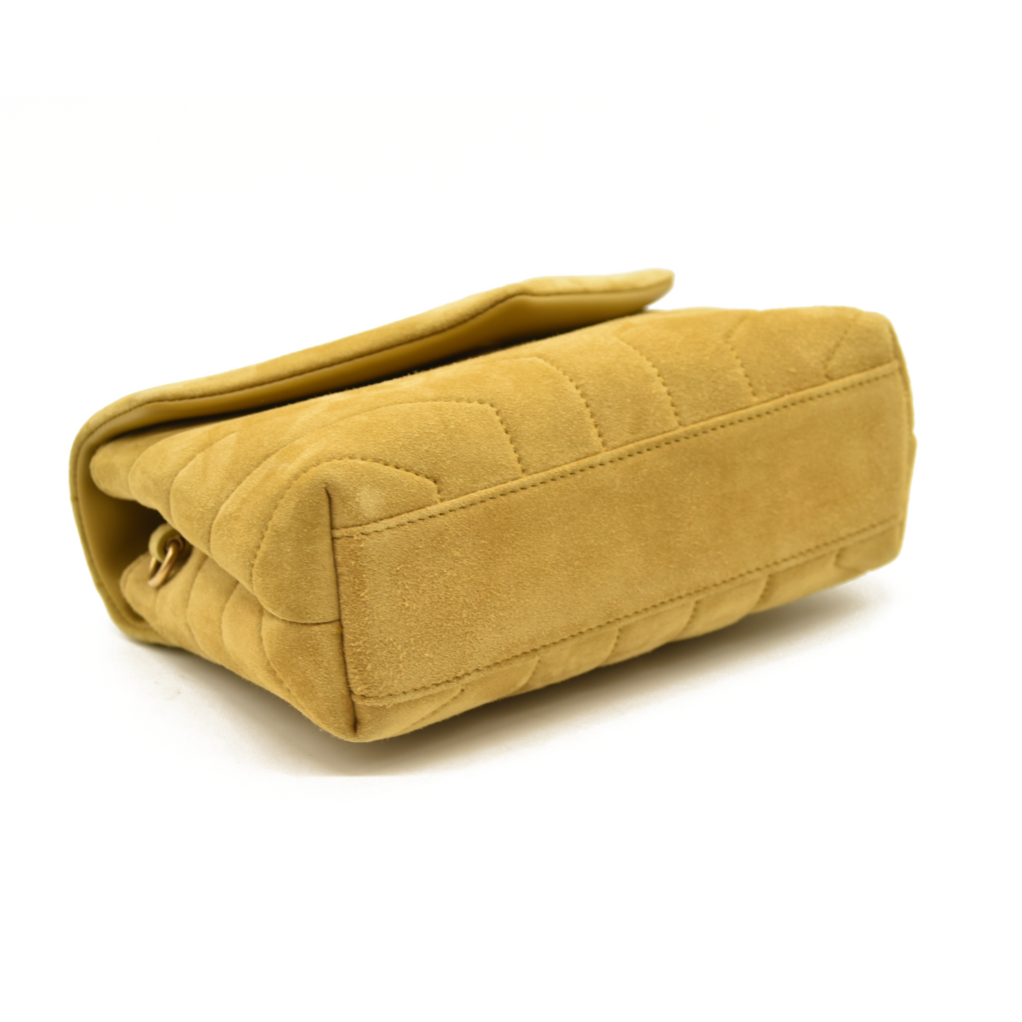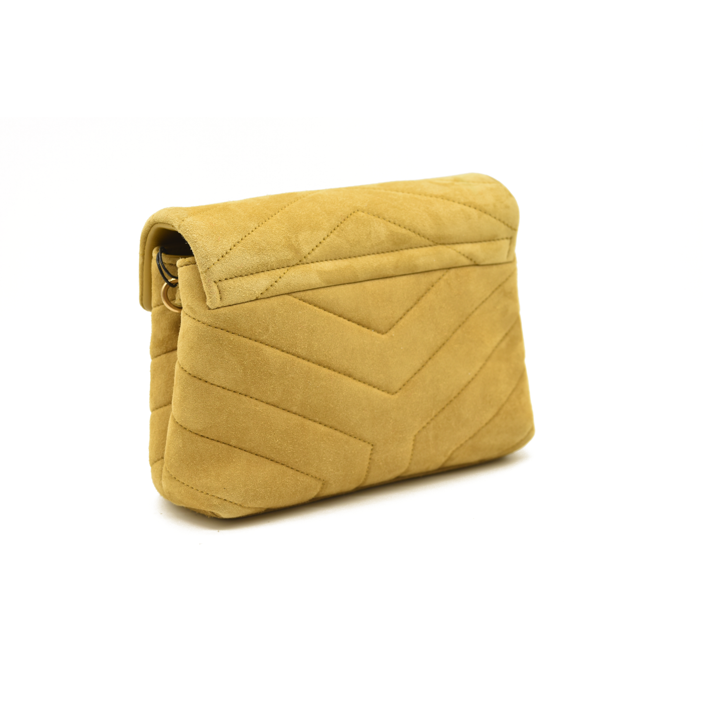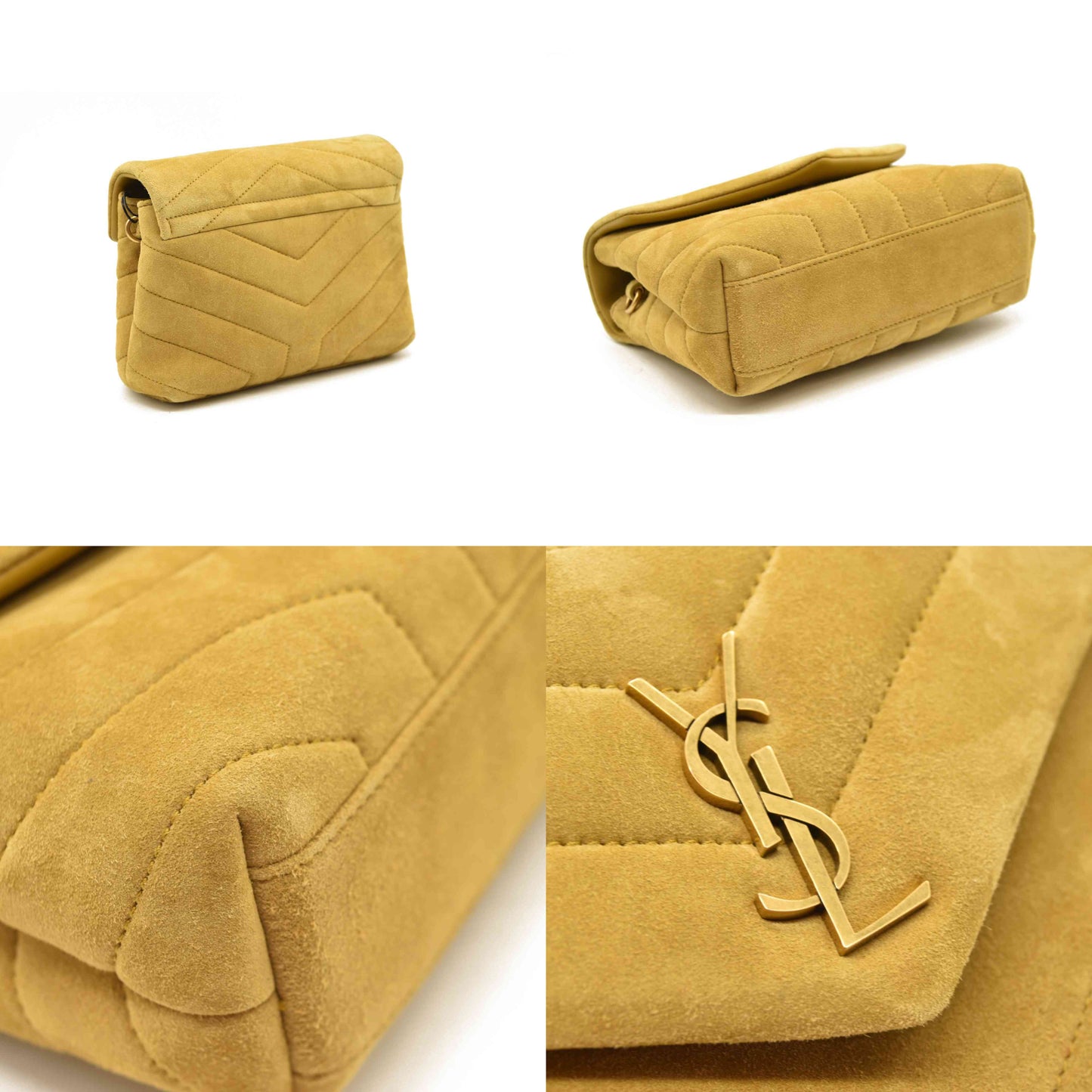 This is an authentic SAINT LAURENT Suede Toy Loulou Shoulder Bag in Chartreuse. This elegant bag is crafted out of yellow-green suede. The shoulder bag features an adjustable suede shoulder strap and gold hardware. The front flap has a prominent matching gold YSL monogram detail and opens to a partitioned black fabric interior with s zipper pocket and card slots.