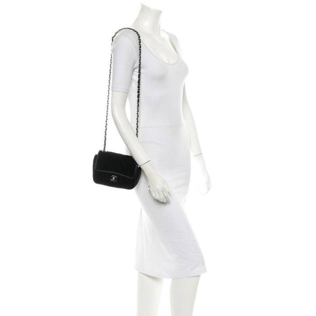 USED Chanel Classic Quilted Mini Square Flap Cc Logo Black Velvet Shoulder Bag