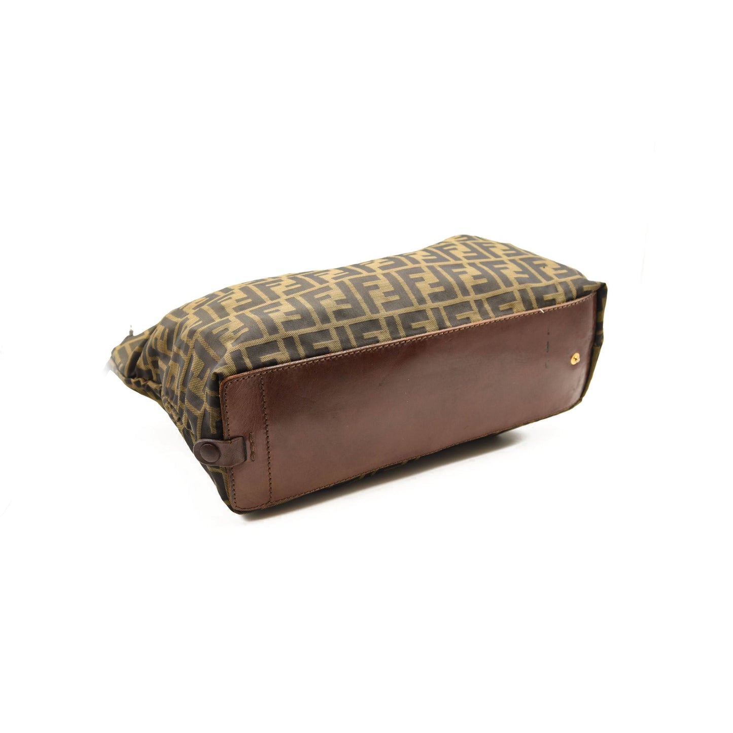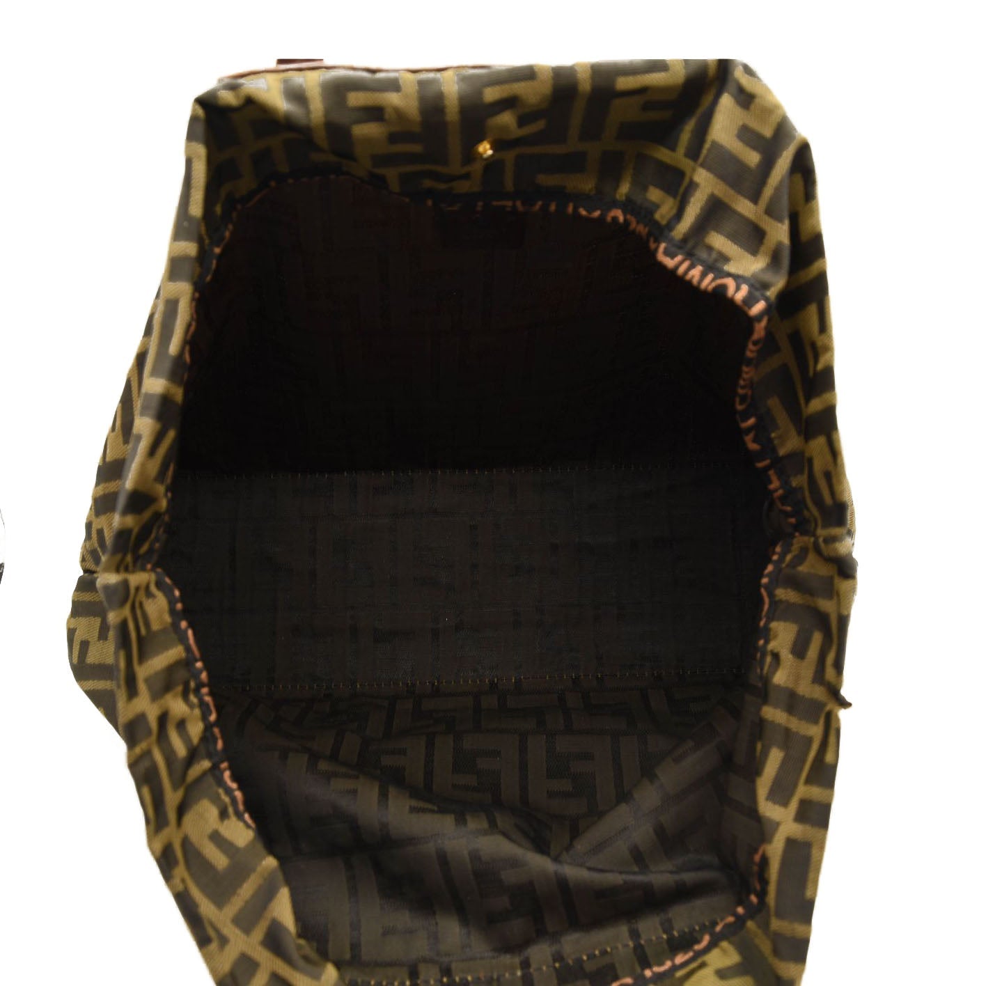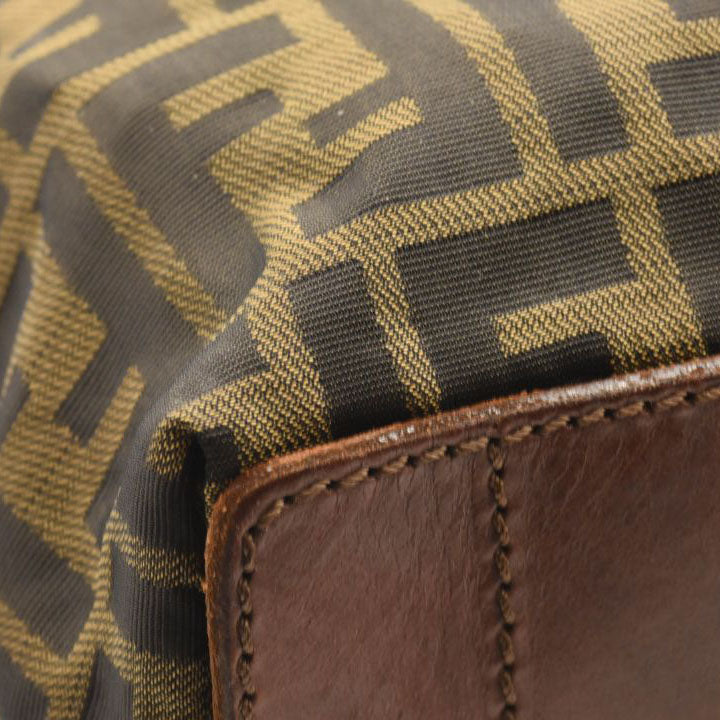 USED FENDI Vintage Zucca Folding Tote Hand Bag Nylon Leather Brown