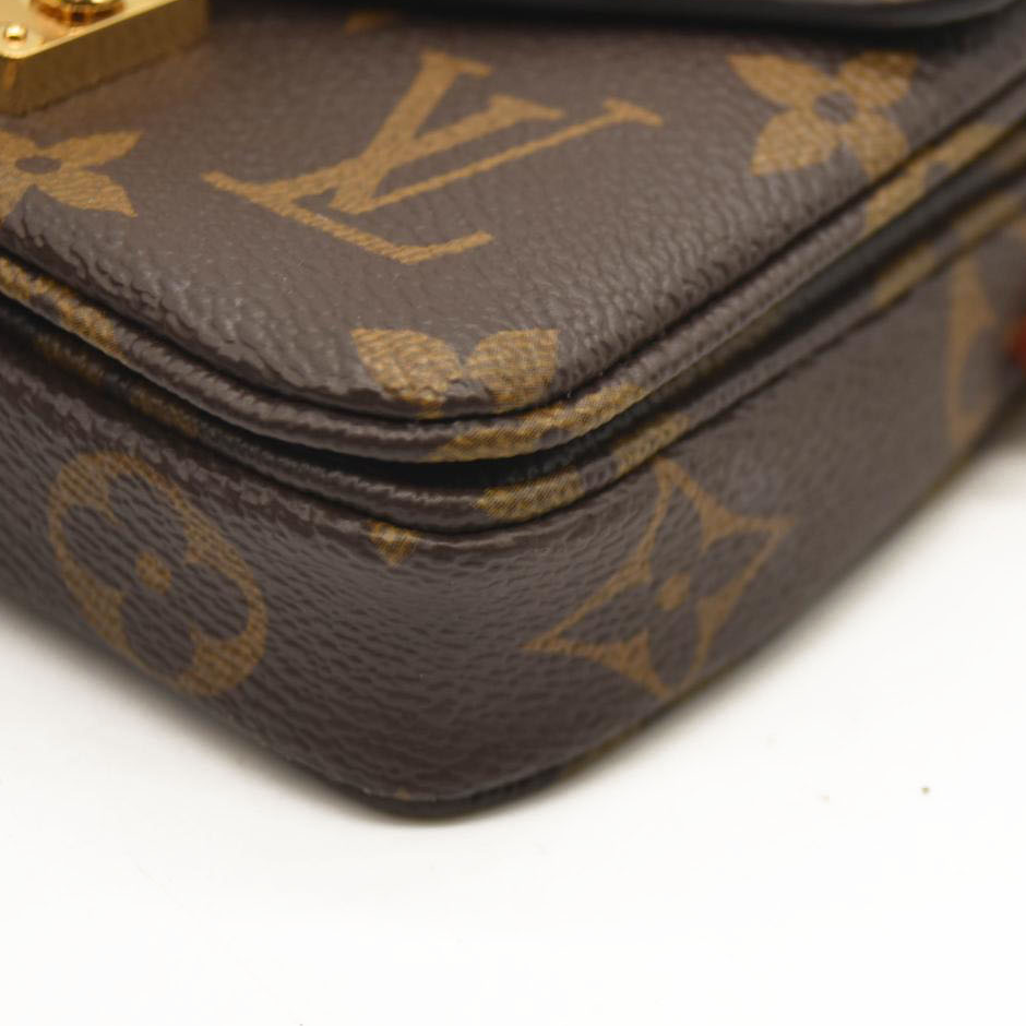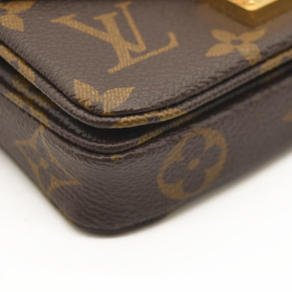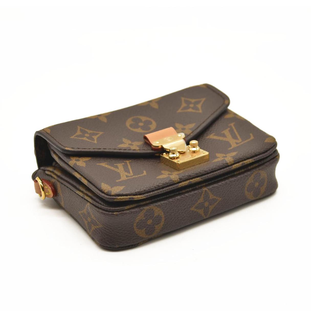 This is an authentic LOUIS VUITTON Monogram Micro Metis. This crossbody is crafted from supple Monogram coated canvas in brown. The shoulder bag features a top handle, a removable chain shoulder strap, and a polished brass S-lock on the flap. This opens to a partitioned brown fabric interior.