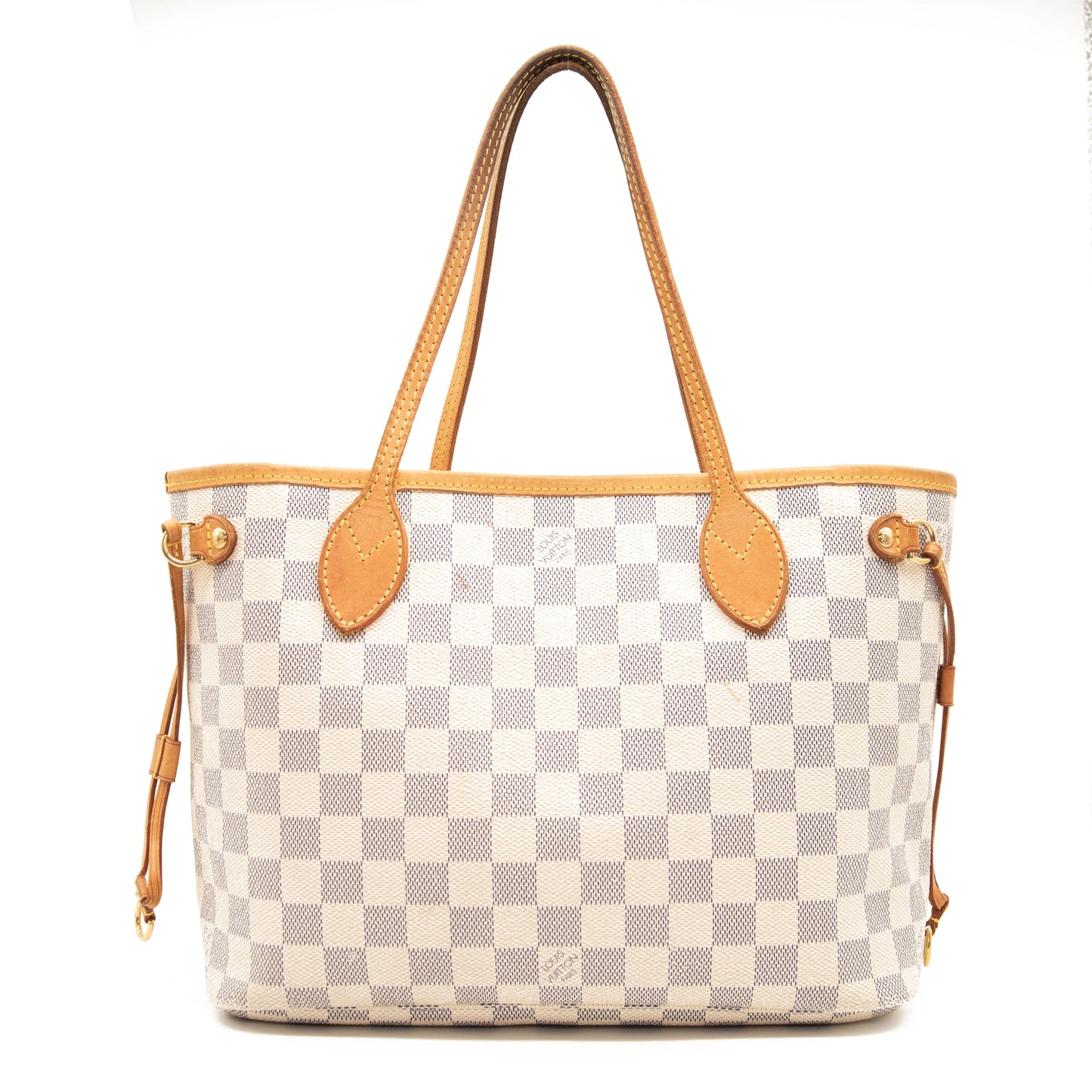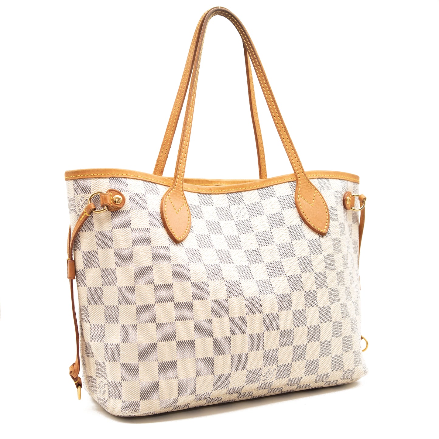 Used Louis Vuitton Neverfull PM Damier Azur White Tote