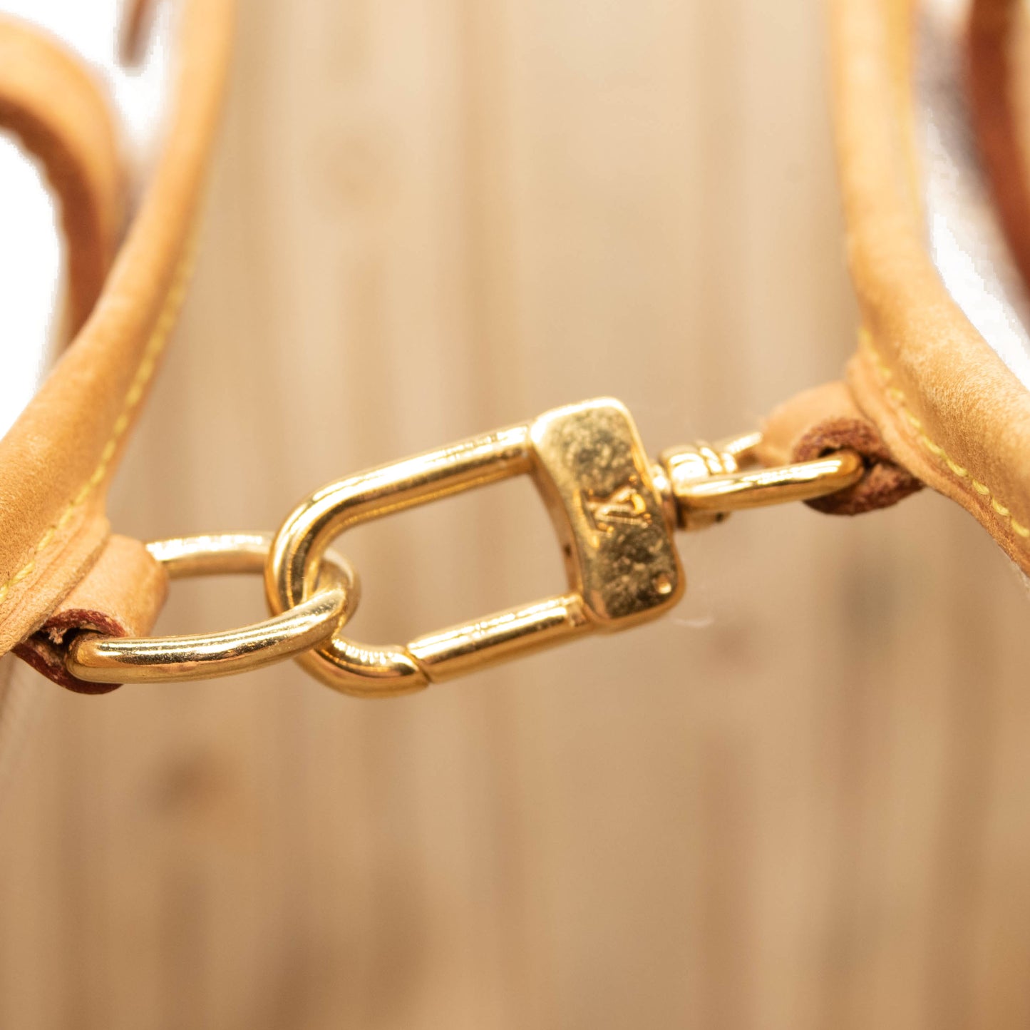 Handle: Edge wear, scuffs, darkening, patina of vachetta