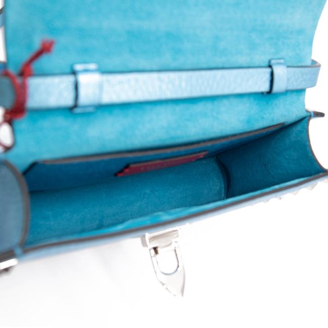 NEW Valentino Small Rockstud Metallic Blue Leather Shoulder Bag