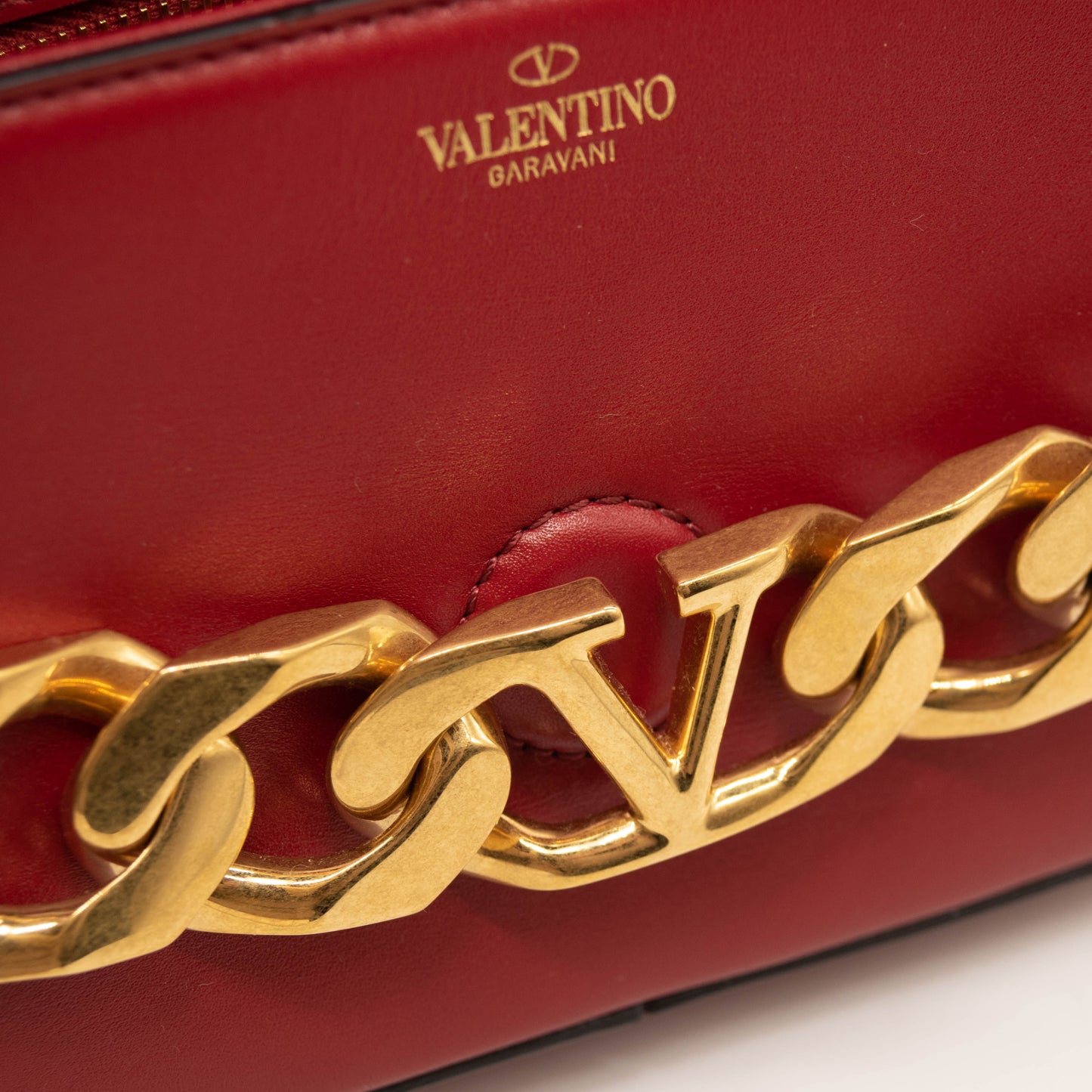 Valentino Small VLOGO Chain Leather Shoulder Bag Red
