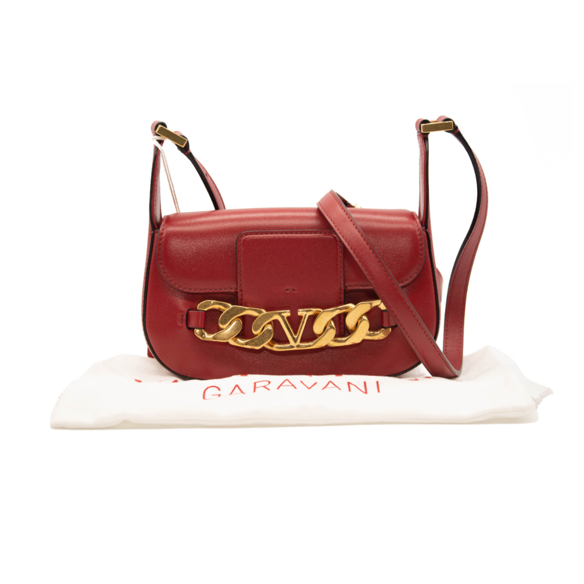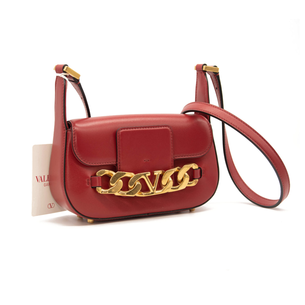 NEW Valentino Small VLOGO Chain Leather Shoulder Bag Red